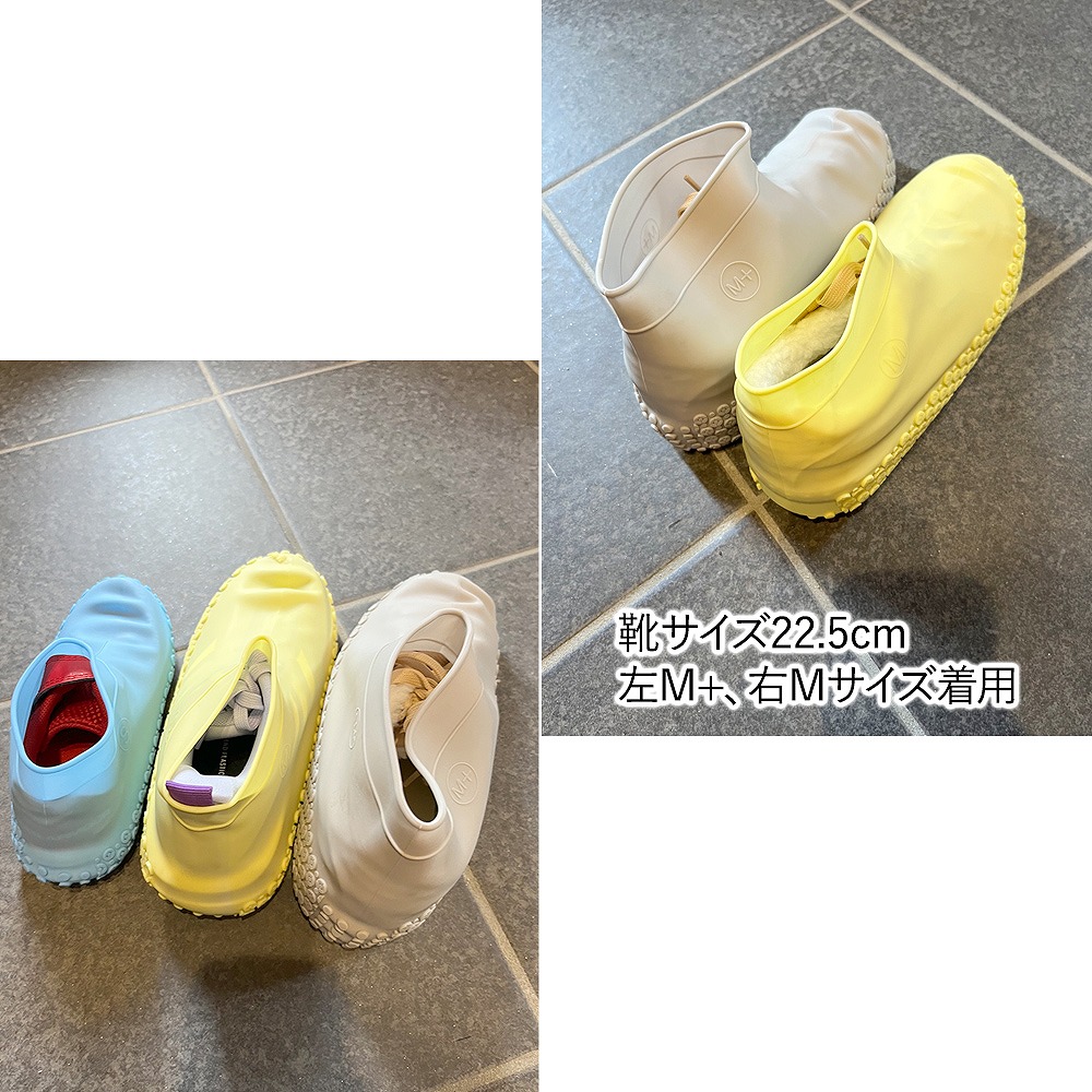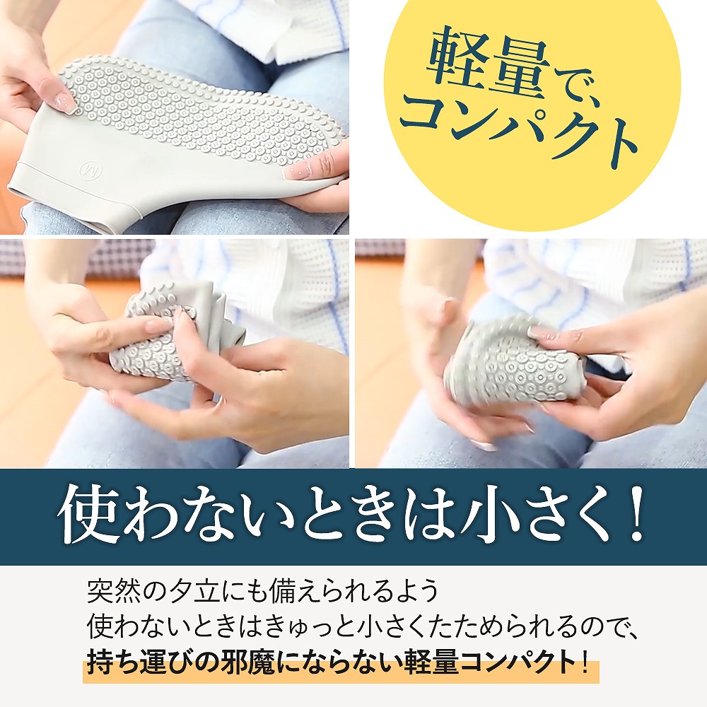 靴下を履くように、靴の先から引っ掛けてぎゅっと被せるだけ。