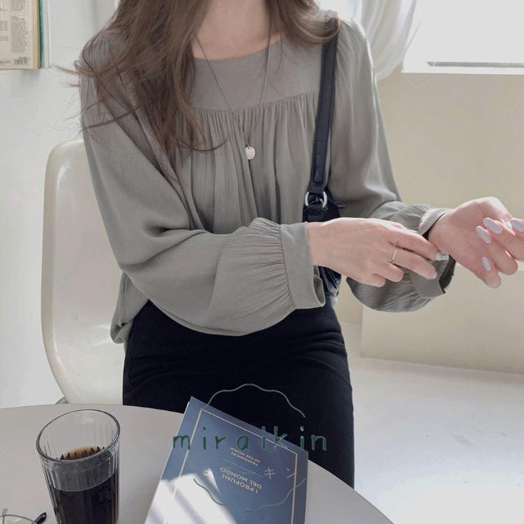 スクエアネック ギャザーブラウス