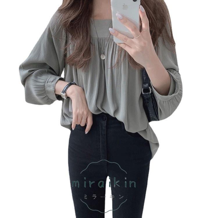 ブラウス レディース 春 夏 春夏 ブラウスシャツ とろみ シャツ トップス 無地 長袖 チュニック スクエアネック ベージュ グレー