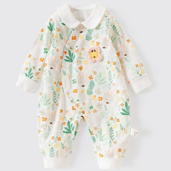 ・ロンパースの股部分はスナップボタン付きだからおむつ替えも簡単にできます。