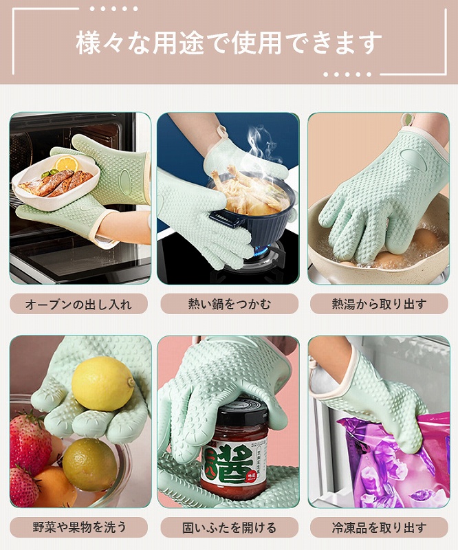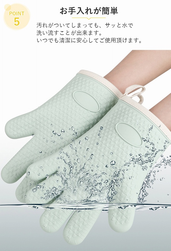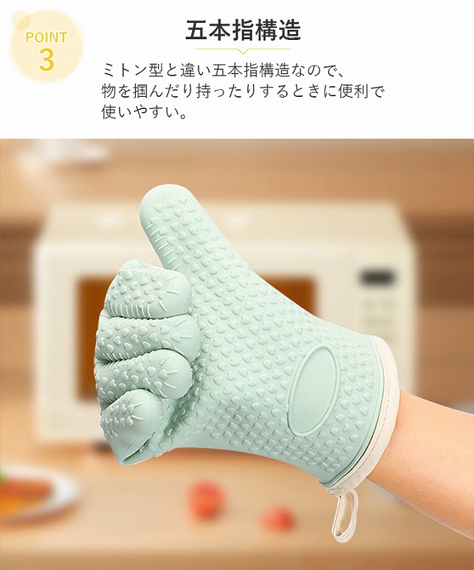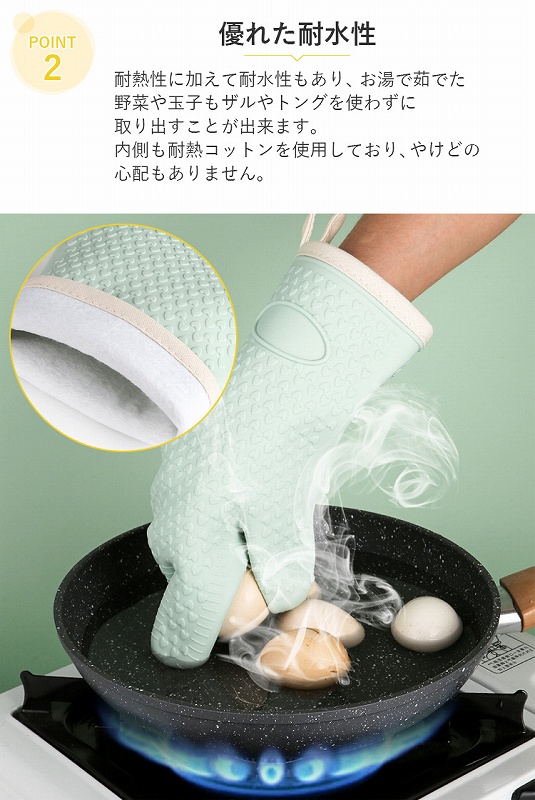 表面はシリコン製で耐熱300℃、内側は肌触りの良いコットンを使用しており、こちらも耐熱仕様。
