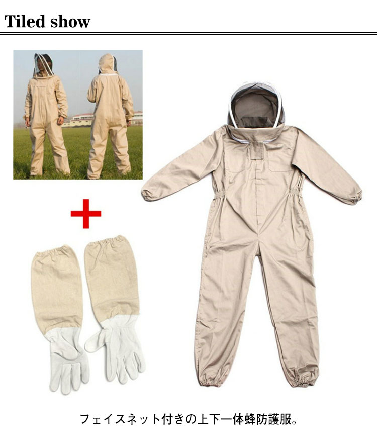 保護装備 養蜂 蜂 2点セット 防護服 駆除 蜂防護服 防護服 上下服 養蜂 蜂巣 農作業 害虫 手袋付き 害虫駆除 蜂の巣 草刈り フェイスネット