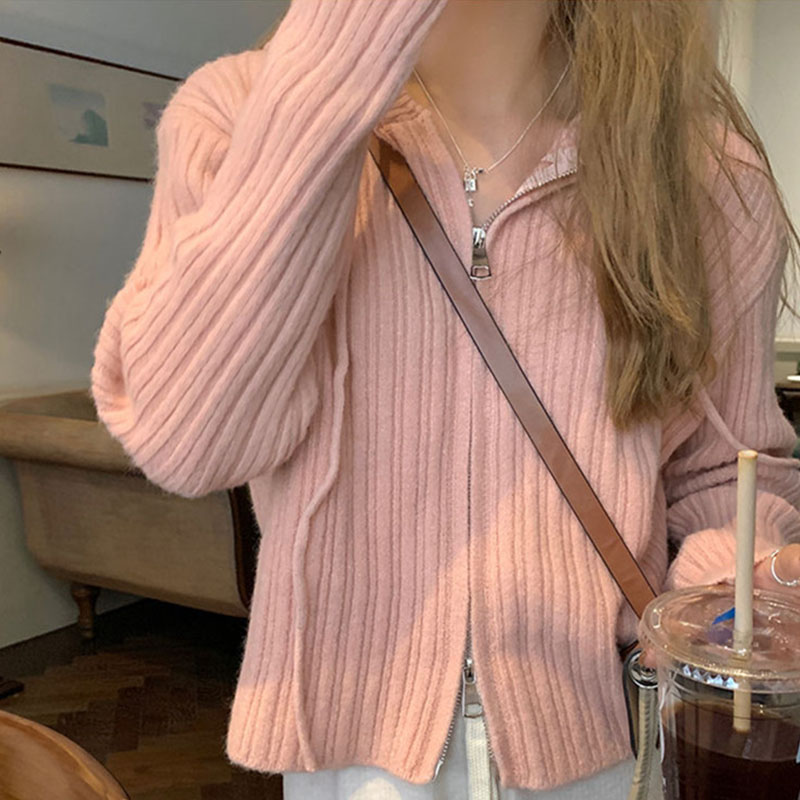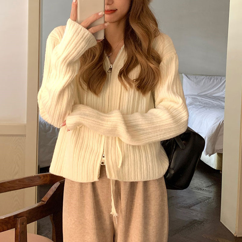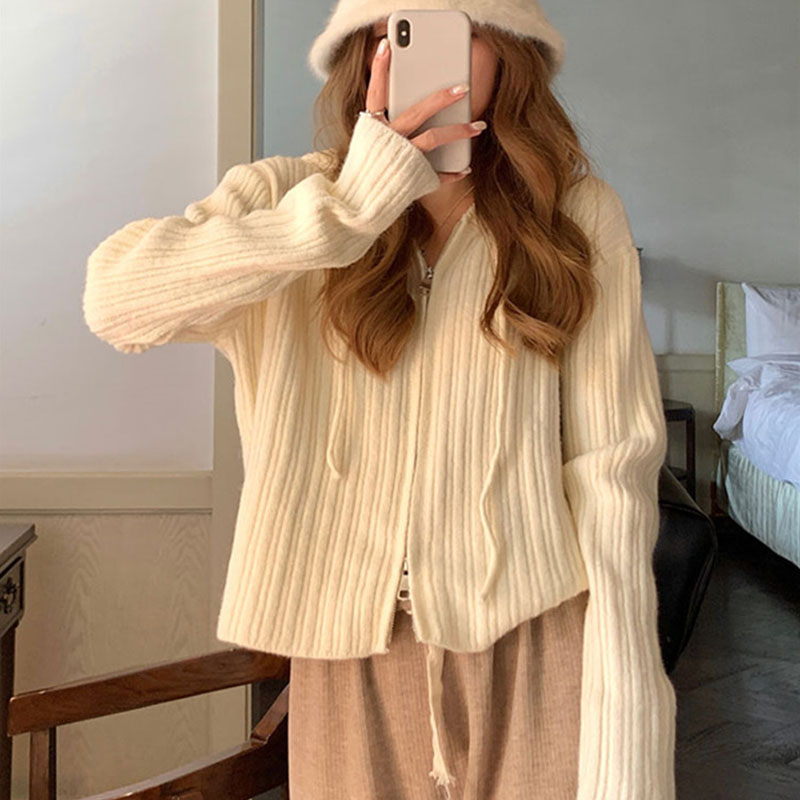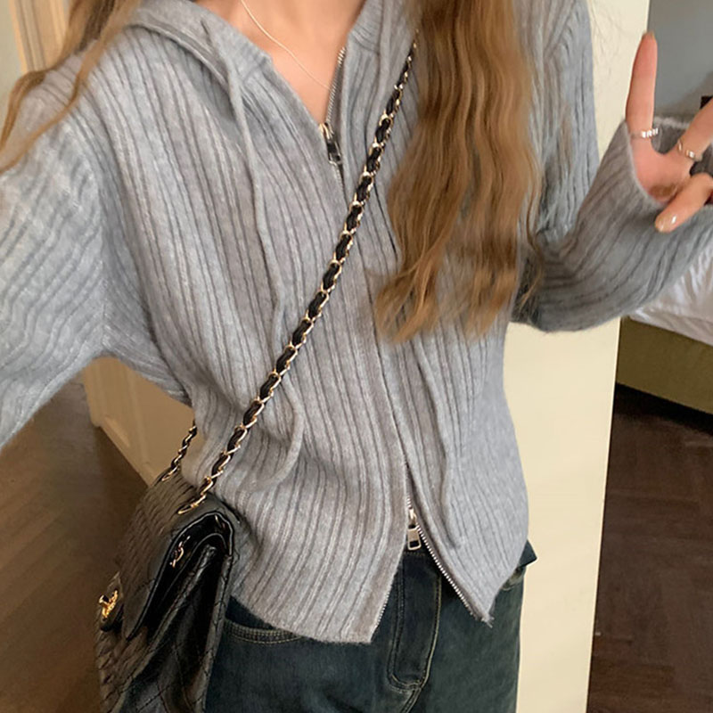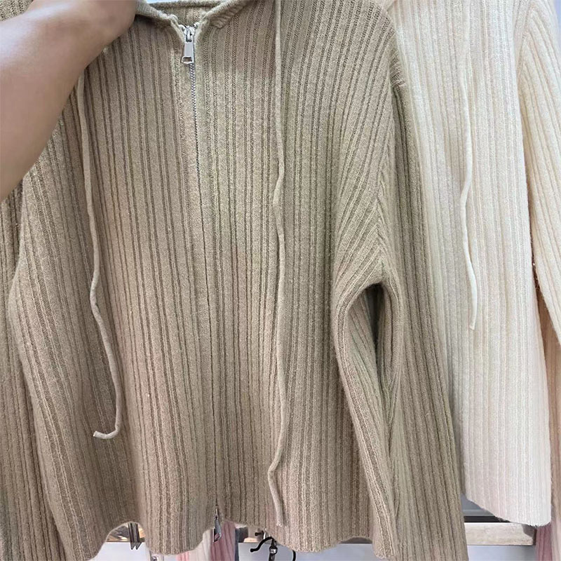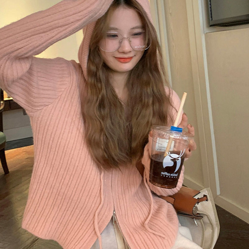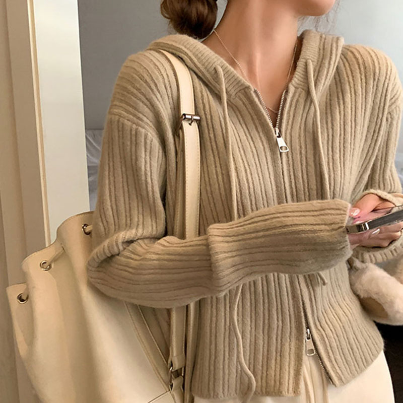 ニット レディース カーディガン トップス 長袖 フード付き おしゃれ カジュアル シンプル ゆったり 春秋コーデ ジップアップ