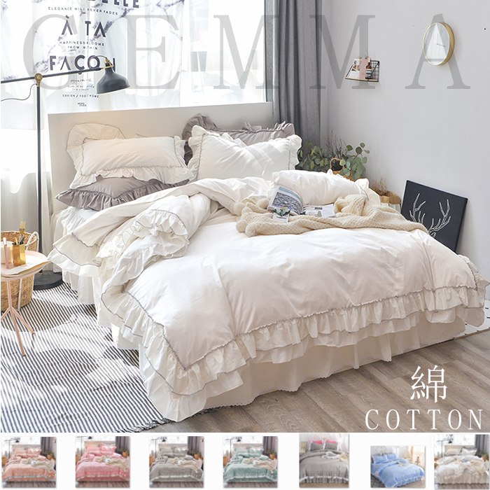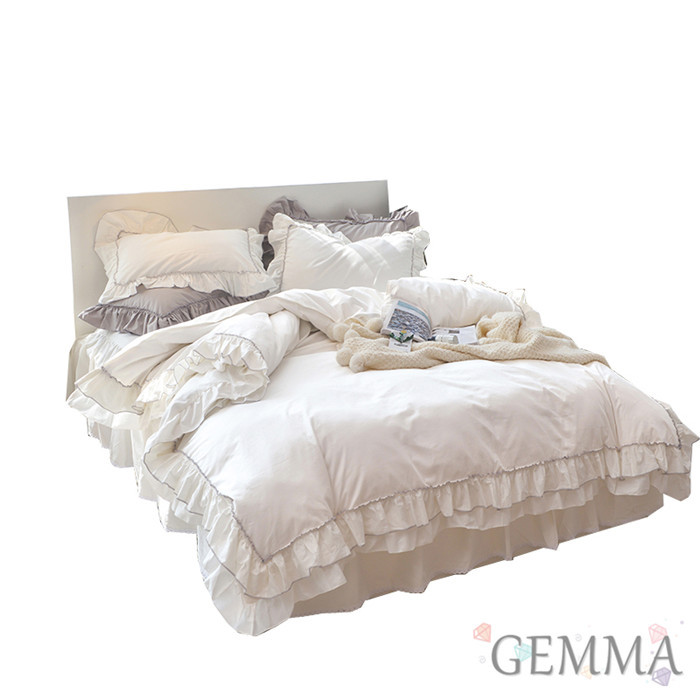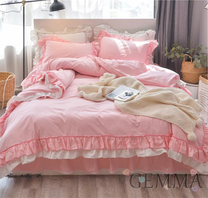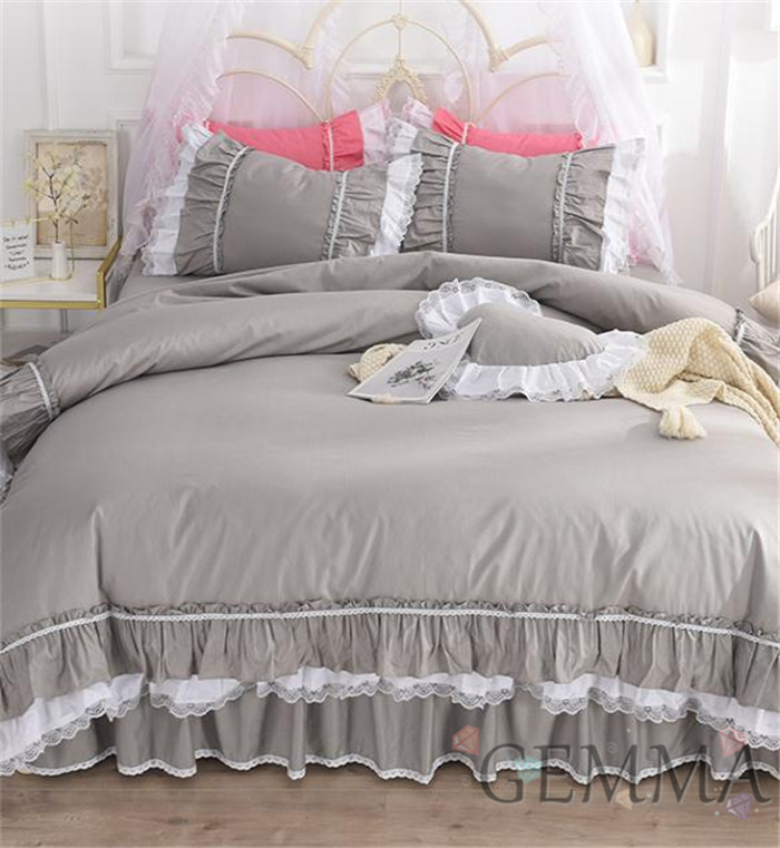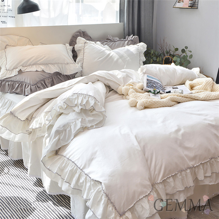 布団カバー ベッドカバー 枕カバー 3点セット 4点セット セミダブル 綿 コットン 姫系 フェミニン レース フリル付 高級感 豪華感 女の子 プレゼント ギフト