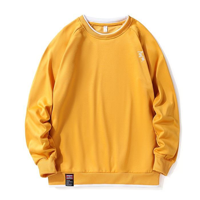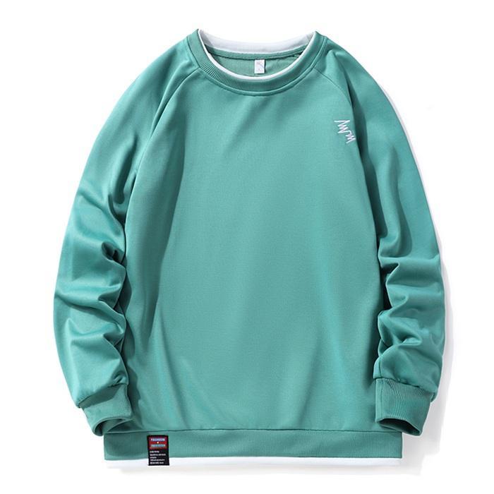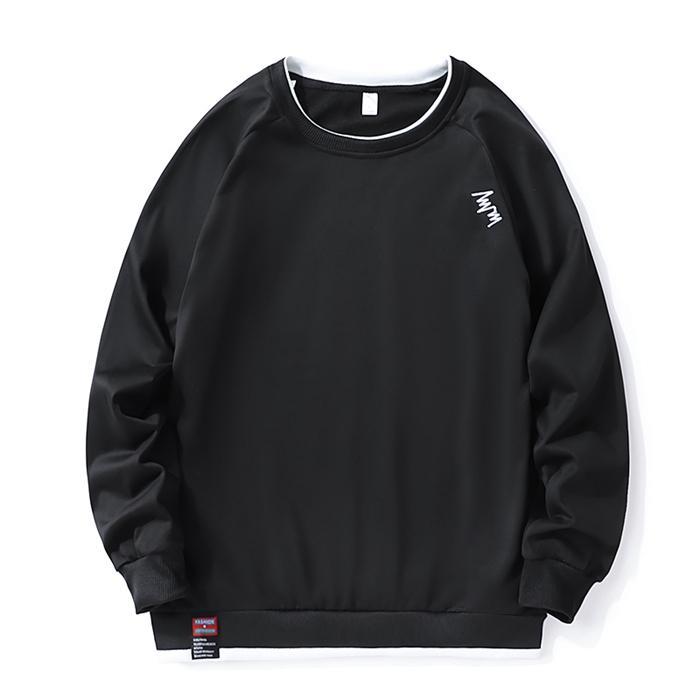 重ね着風トレーナー メンズ 長袖 クルーネック 刺繍 スウェット 切り替え トップス カジュアル プルオーバー おしゃれ コーデ シンプル かっこいい
