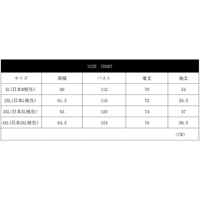 サイズ XL(日本M相当) 2XL (日本L相当) 3XL (日本XL相当)4XL (日本2XL相当)