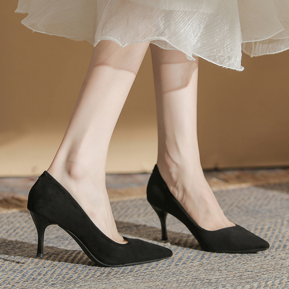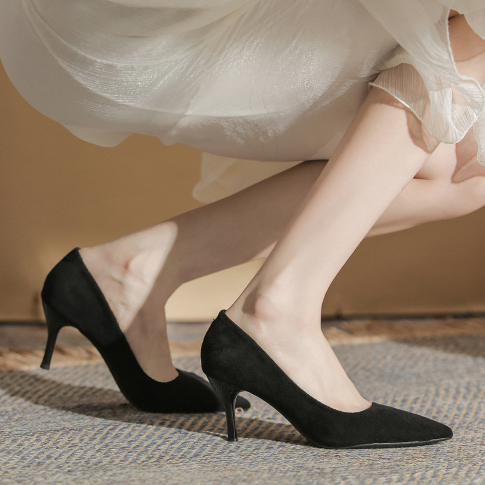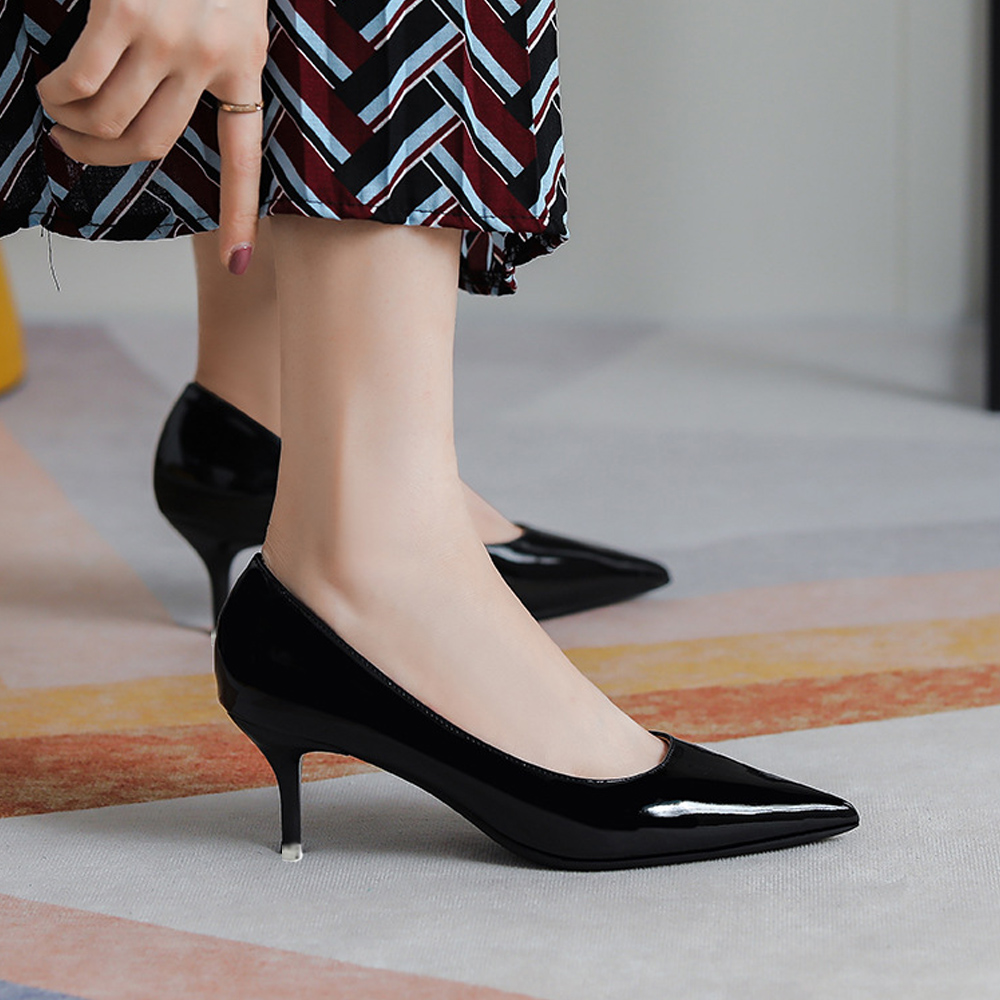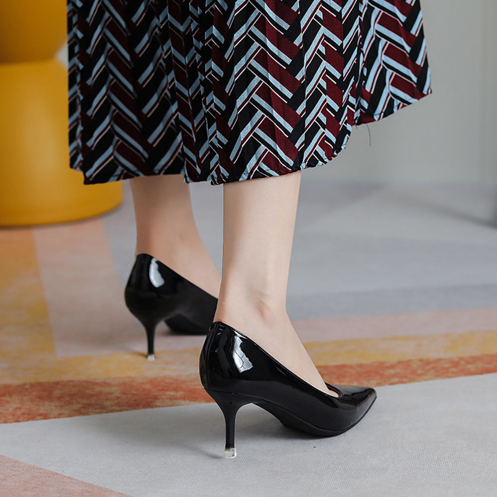 1足は持っておきたい、ベーシックなカラーでシンプルなデザインのポインテッドトゥパンプスです。