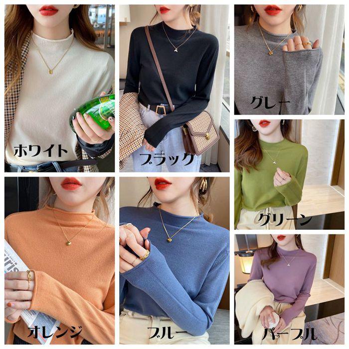 ニットソー ニット レディース トップス カラバリ 長袖 エレ春秋 ニットインナー ハイネック 可愛い 薄手 おしゃれ 無地
