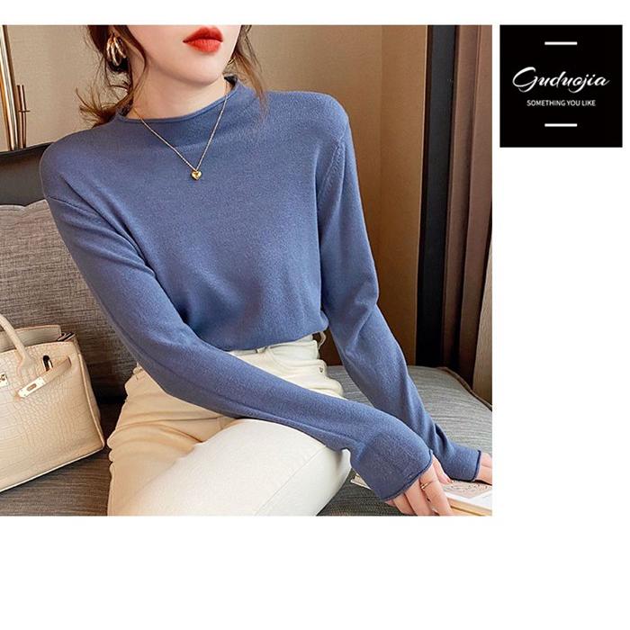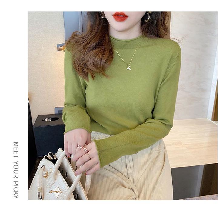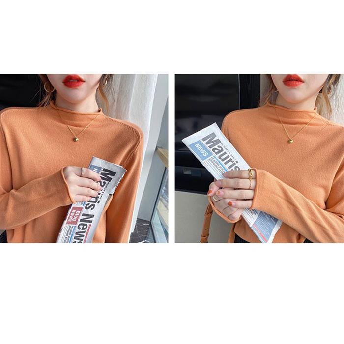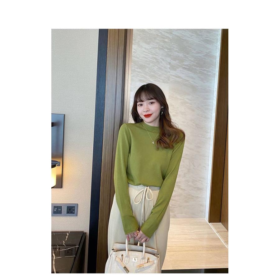 ニット レディース トップス カラバリ 長袖 無地 ハイネック ニットインナー 薄手 おしゃれ 可愛い エレガント 春秋