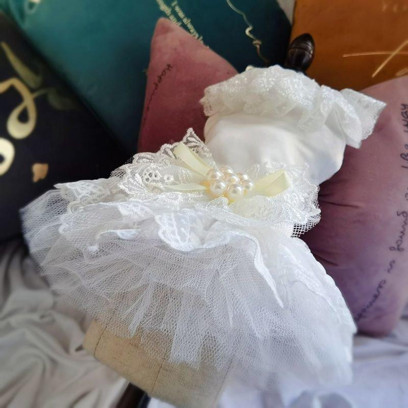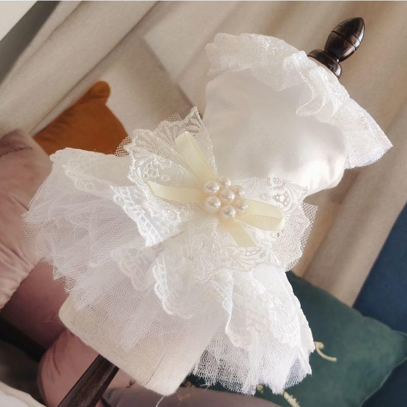 ドッグウェア 犬用 小型犬 ペット用品 ウエディングドレス レース リボン フ 刺繍 フリル 結婚式 きれいめ メッシュ リングドッグ フェイクパール