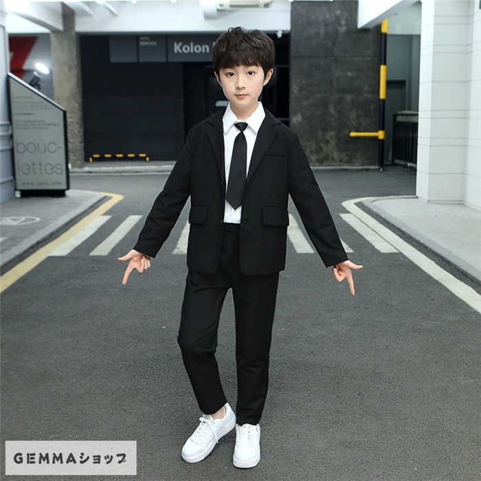 子供スーツ 男の子 2点セット 3点セット フォーマルスーツ ジャケット シャツ パンツ 入学式 卒業式 発表会 七五三 中小学生 ブラック