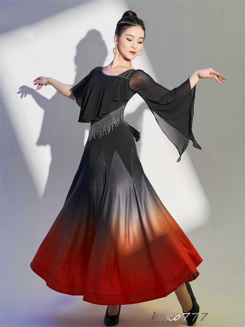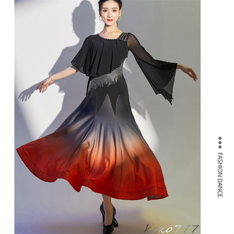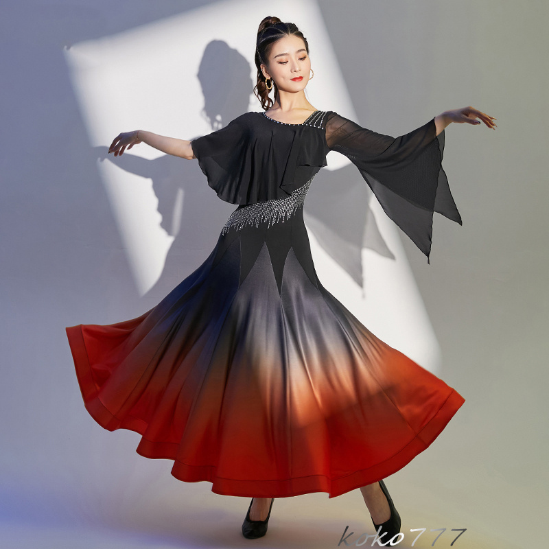 ロングドレス レディース ワンピース ラテンダンス カラードレス パーティー モダンダンス ナショナルダンス ワルツ コスチューム 舞台衣装 公演 洋服 発表会