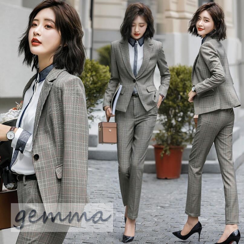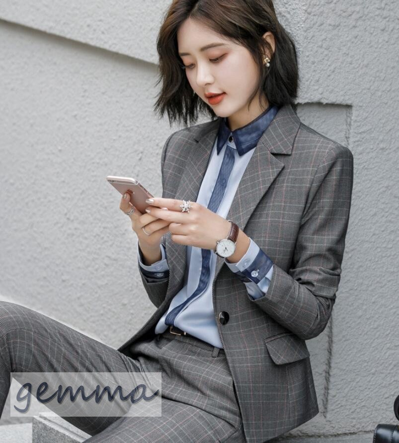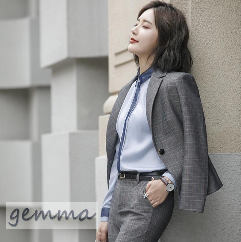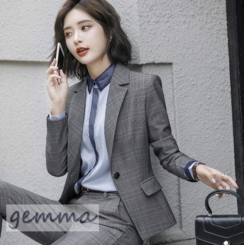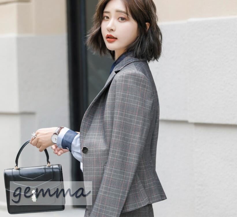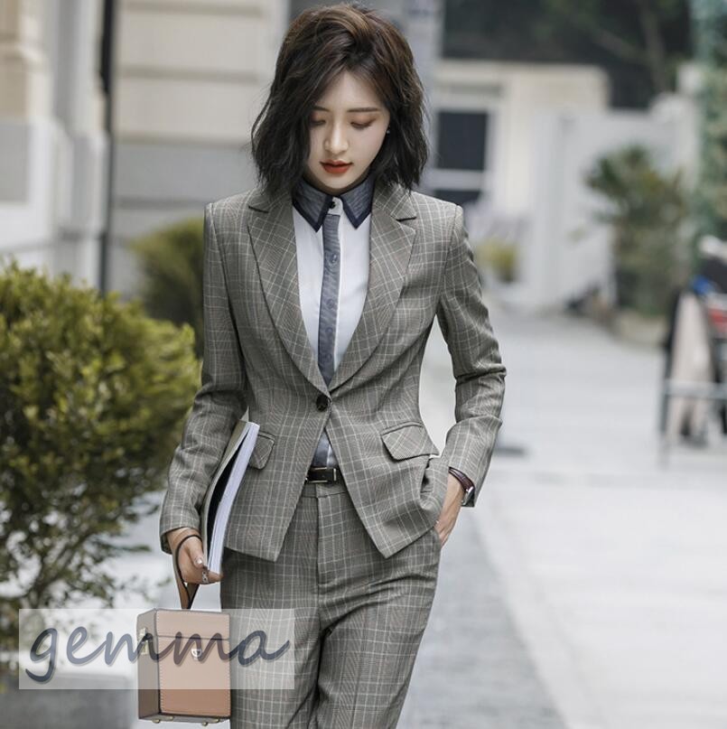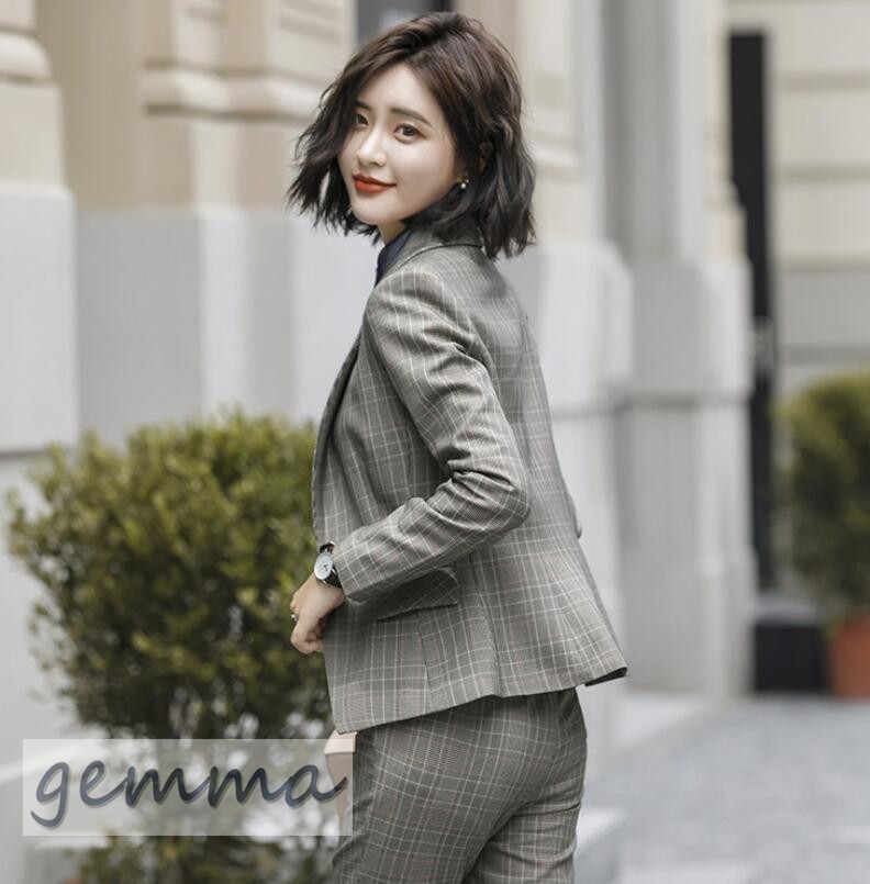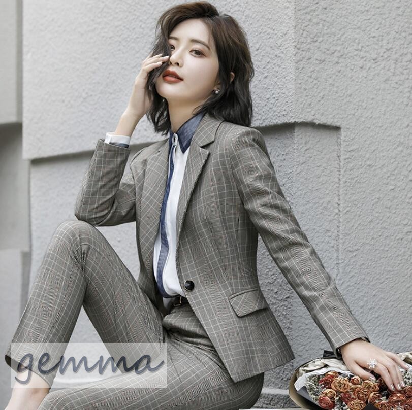 送料無料 パンツスーツ ジャケット セットアップ フォーマル スーツ オシャレ 大きいサイズ 通勤 オフィス 事務服 パンツセット ビジネス就活 チェック柄