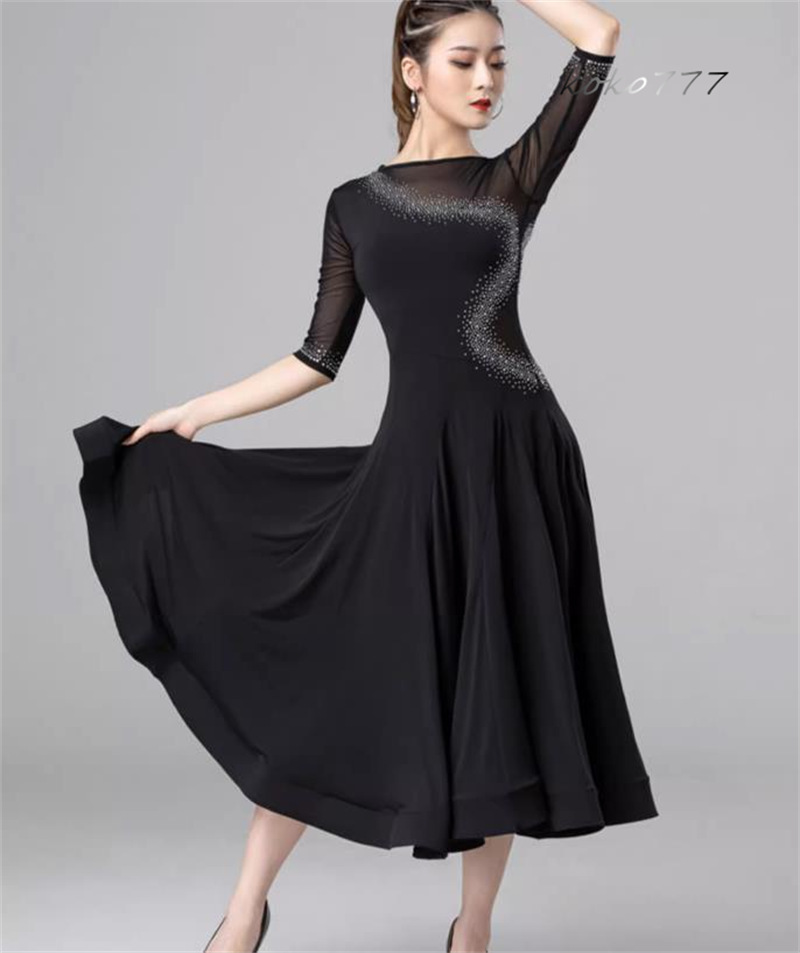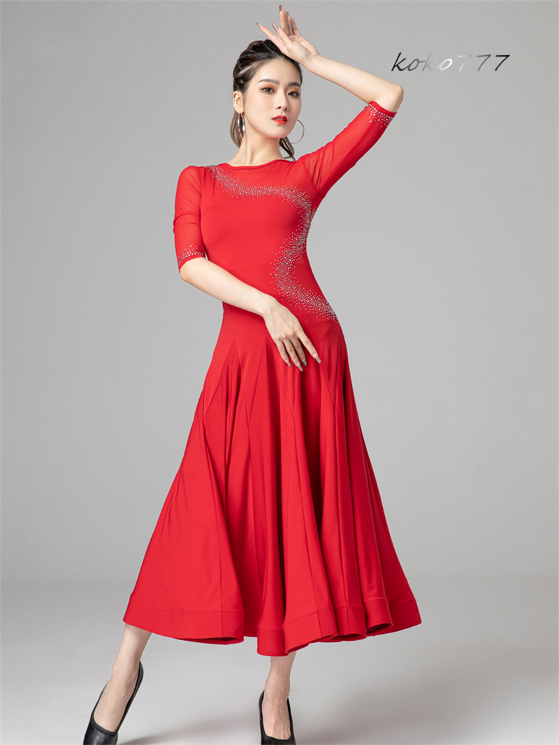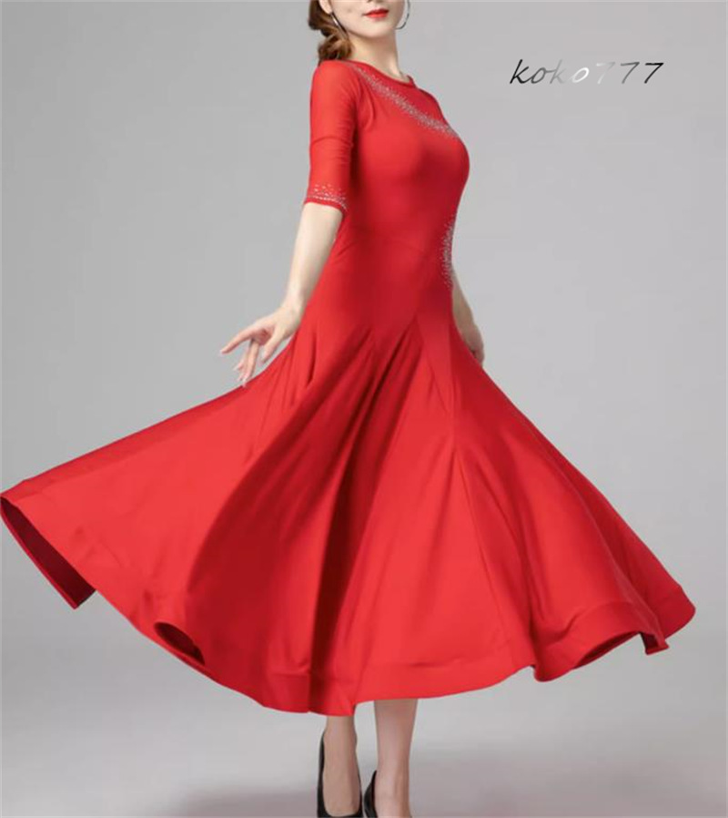 ロングドレス レディース ワンピース ラテンダンス ラインストーン パーティー ワルツ 発表会 公演 モダンダンス ナショナルダンス コスチューム 舞台衣装 洋服