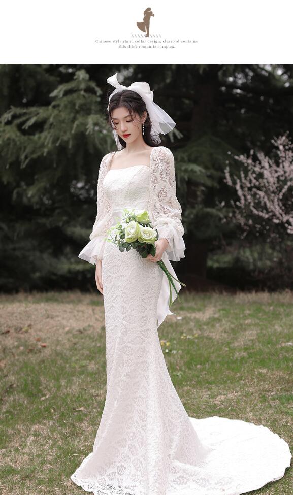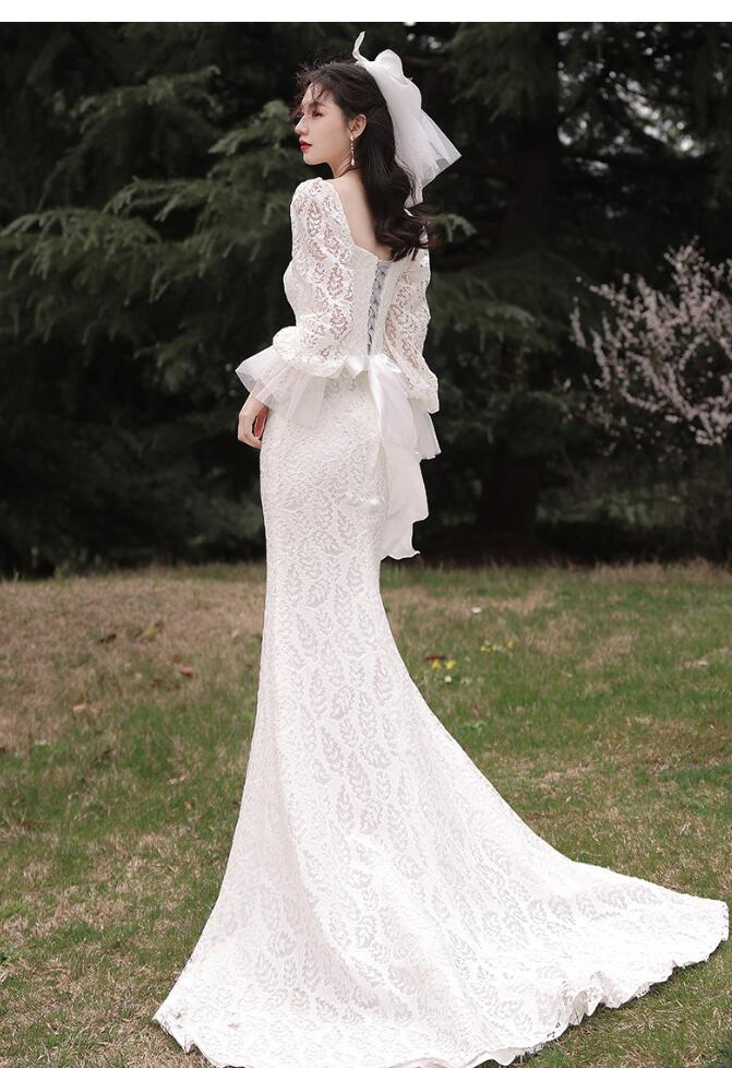 ウエディングドレス マーメイドドレス レース 刺繍 ロング イブニングドレス 演奏会 花嫁 結婚式 披露宴 サテン お呼ばれ ドレス ピアノ発表会 二次会