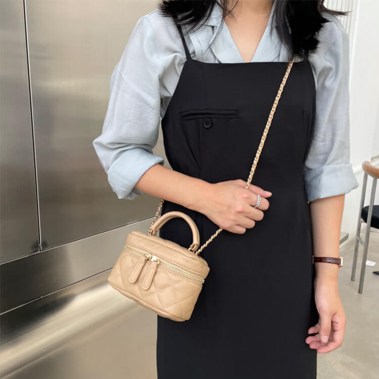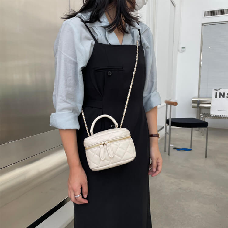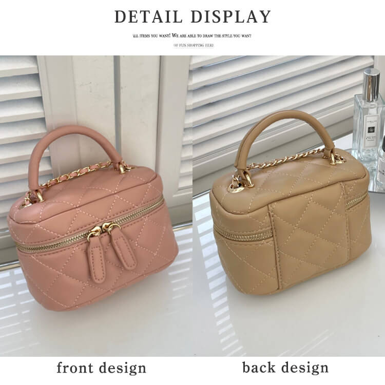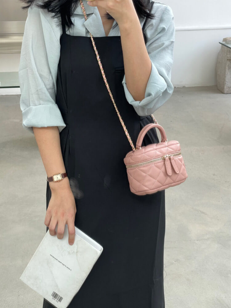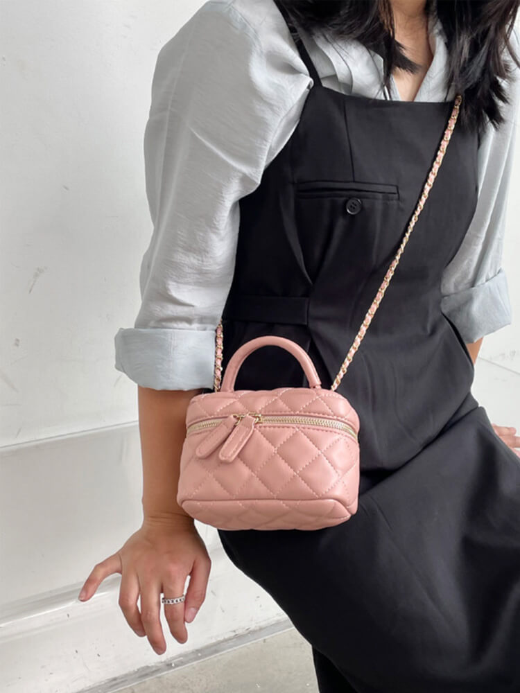 韓国デザインのキュートなダイヤ柄キルティングレザーの3WAYショルダーバッグ。