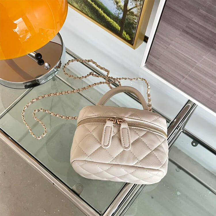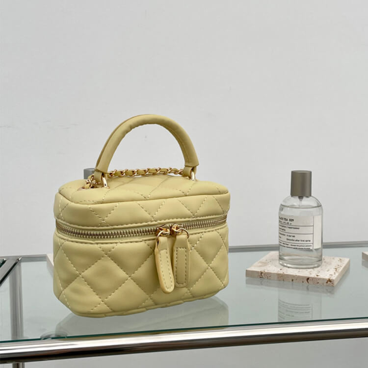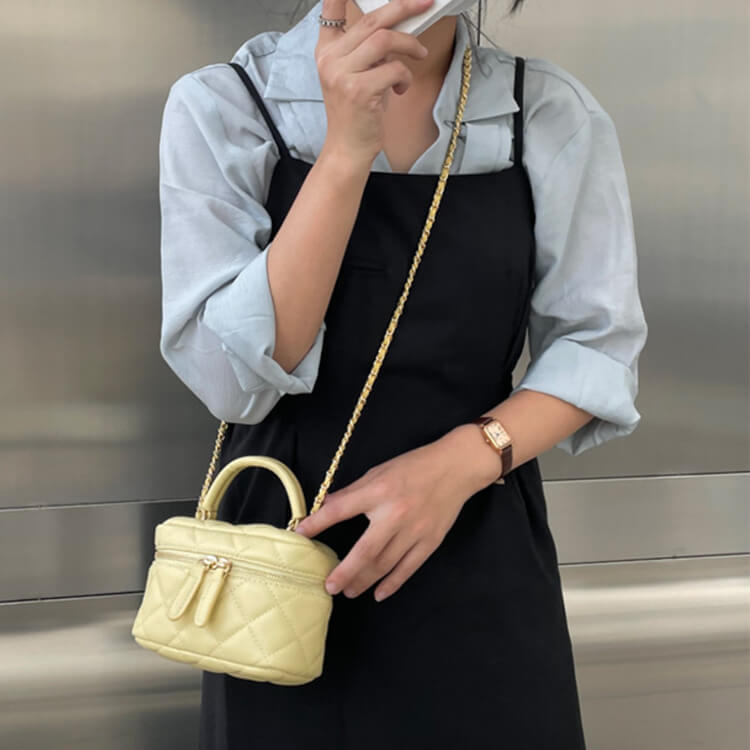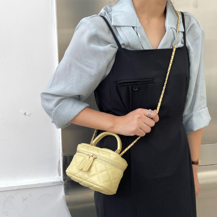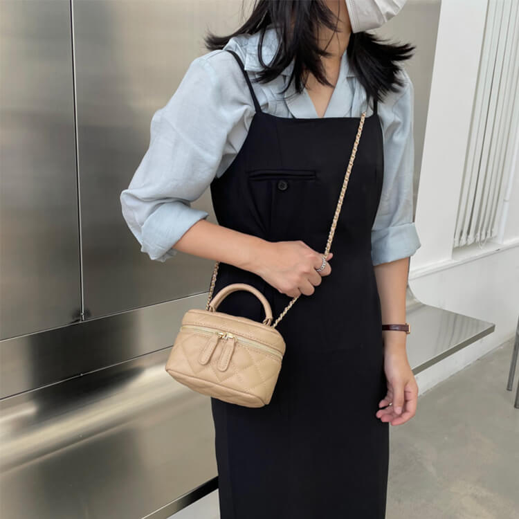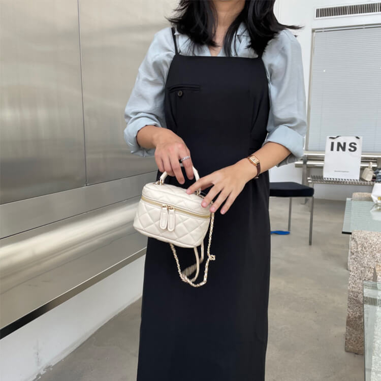 韓国デザインのキュートなダイヤ柄キルティングレザーの3WAYショルダーバッグ。