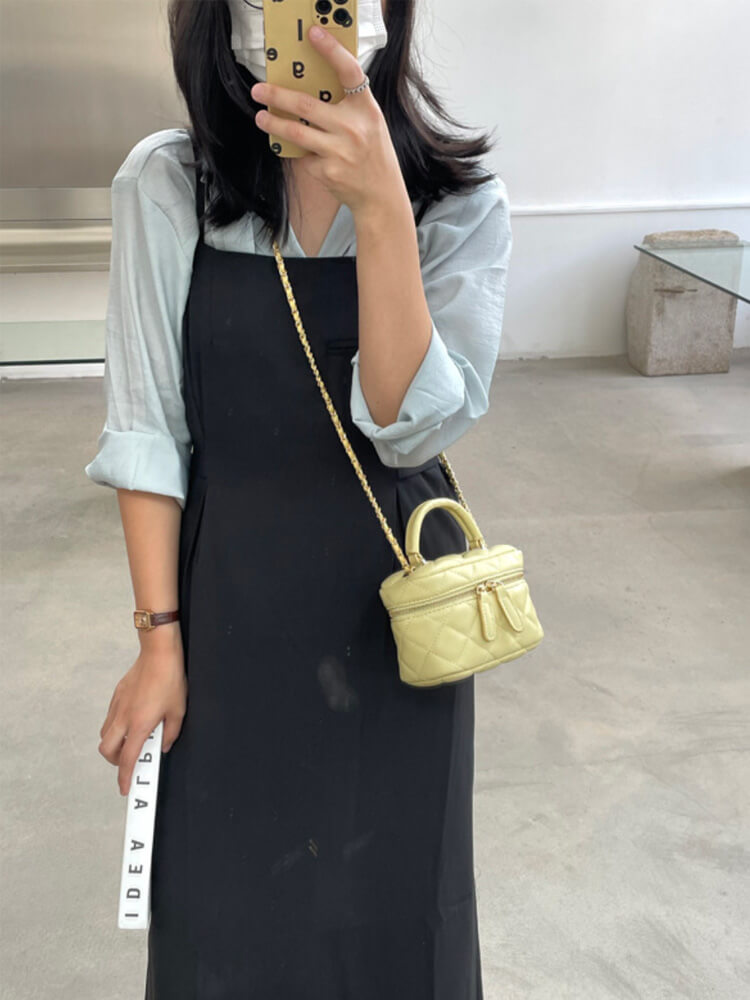 ハンドルでハンドバッグとしても、チェーンショルダーでワンショルダーバッグとしても、ポシェットバッグとしてもお使いいただける便利な3WAY。
