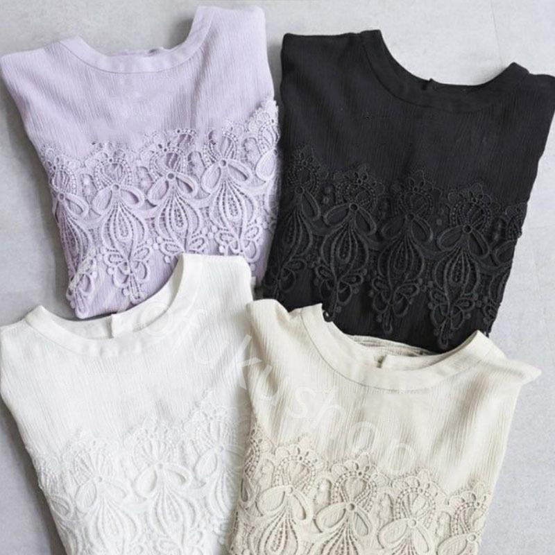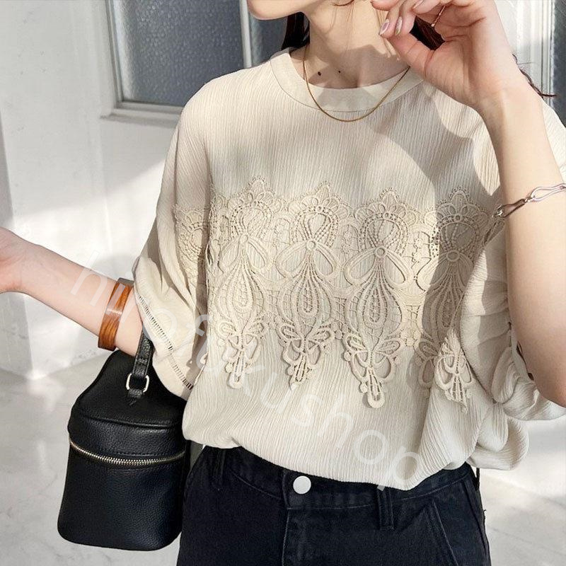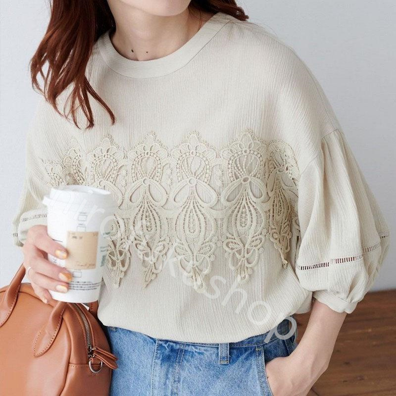 レースをパッチワークにした、着るだけでお洒落な雰囲気たっぷり。
