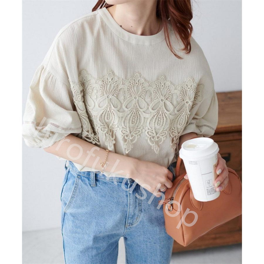 デニムと相性抜群のパッチワークレース使いがお洒落なトップス。