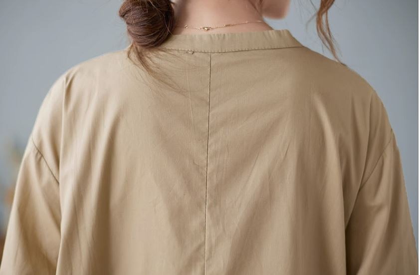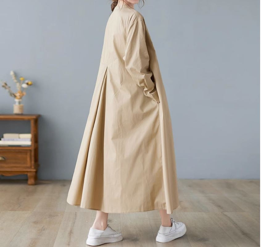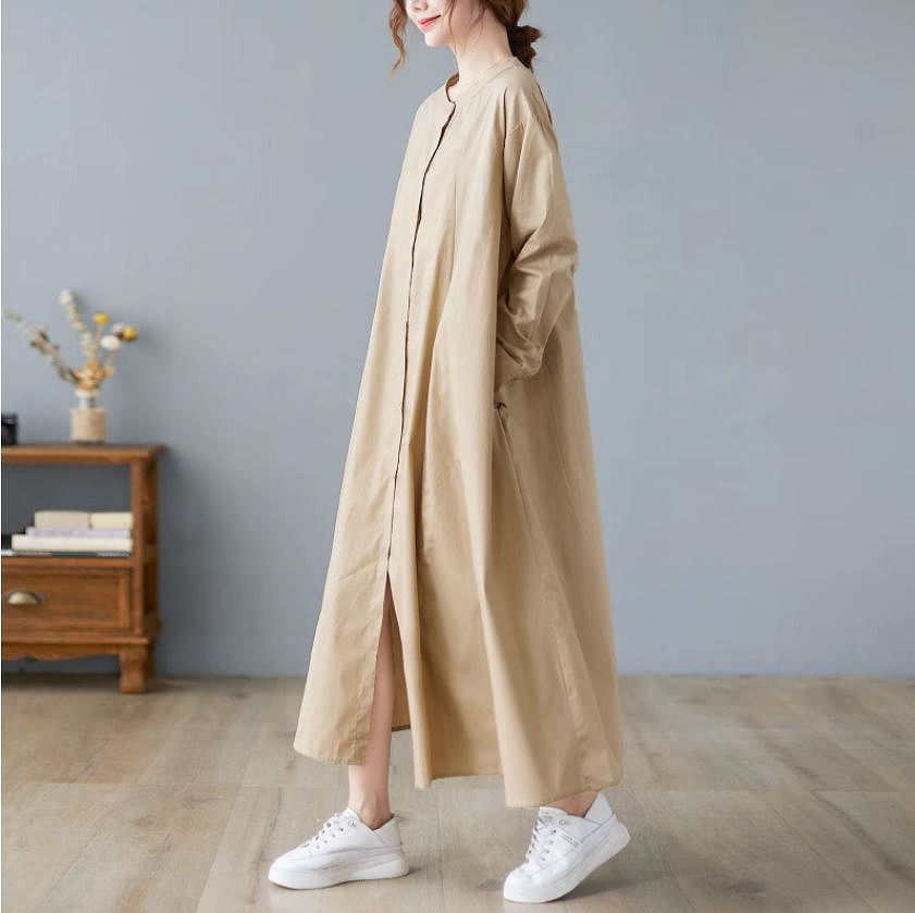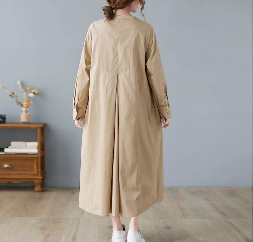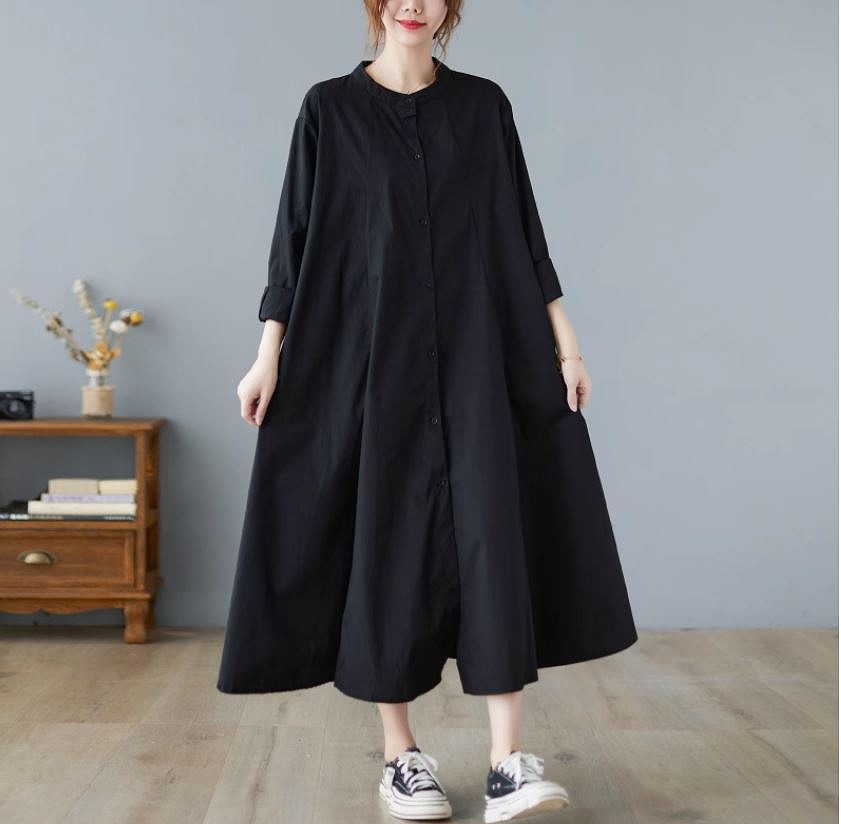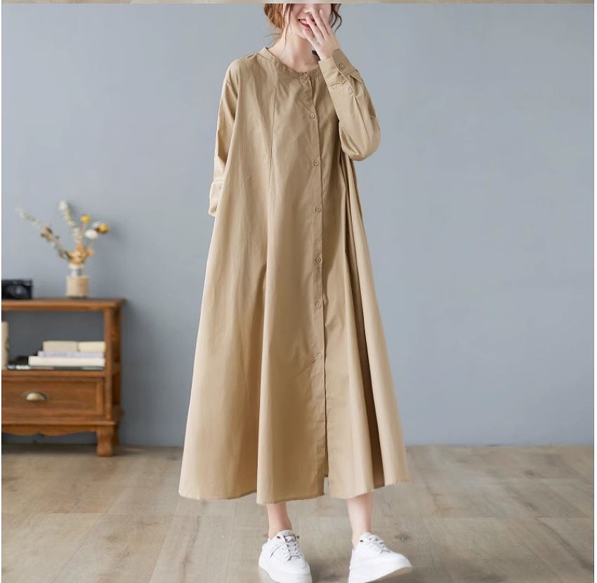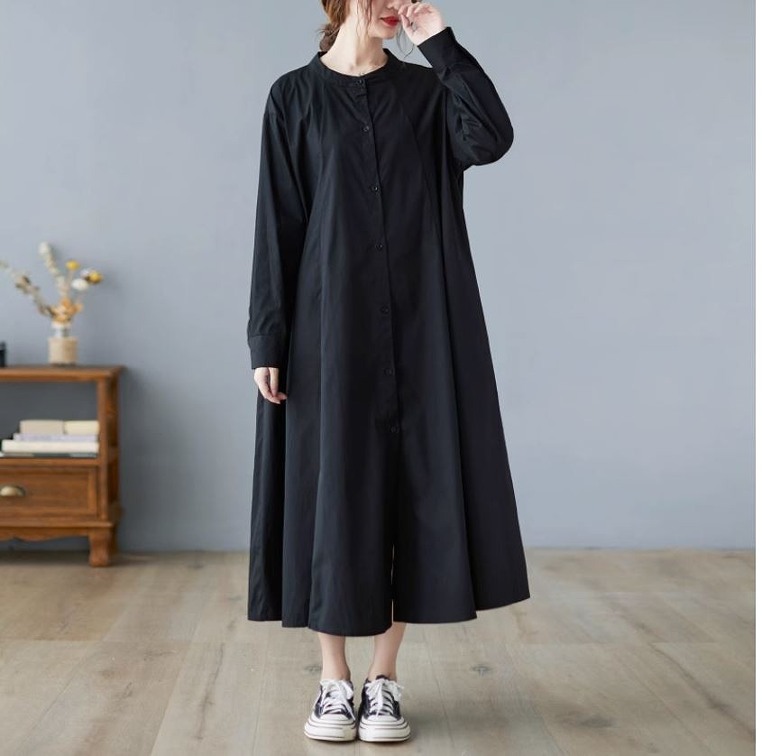 ミモレ丈ワンピース ロングワンピース ゆったりサイズ スタンドタックフレアスカート 長袖お出かけ女子会20代30代40代