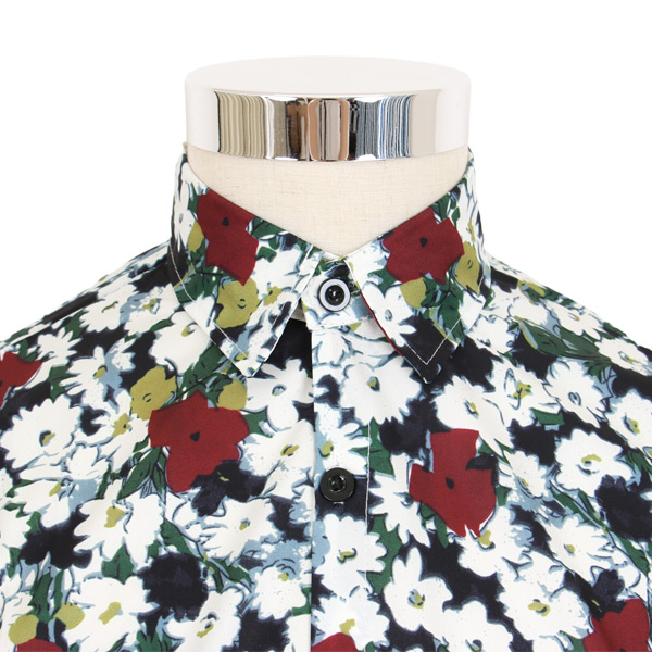 レトロシックな花柄の長袖シャツ。