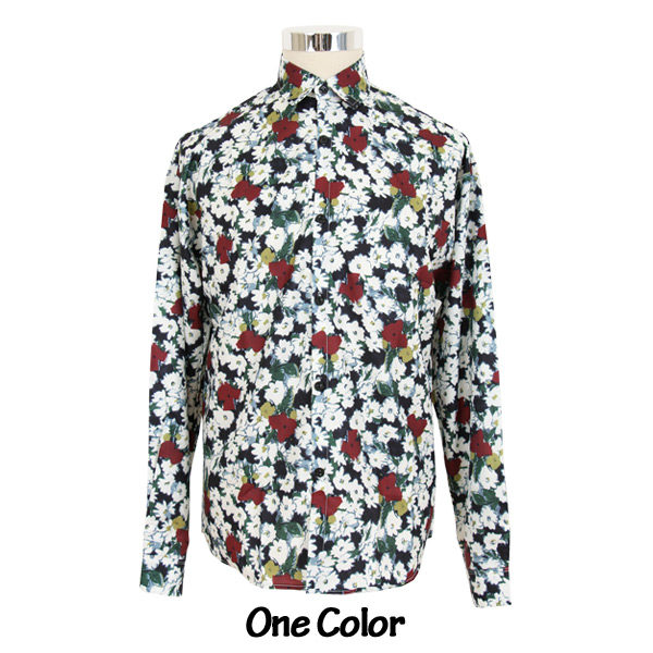 あり 柄シャツ 花柄 長袖シャツ レトロ フラワー柄 ボタ