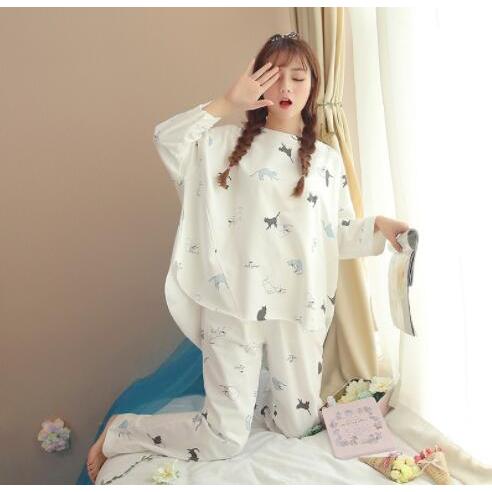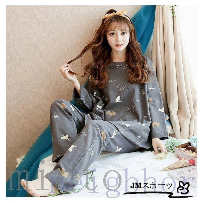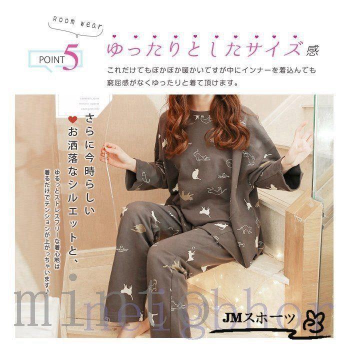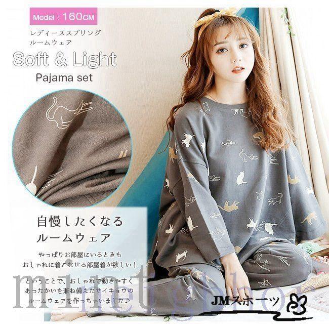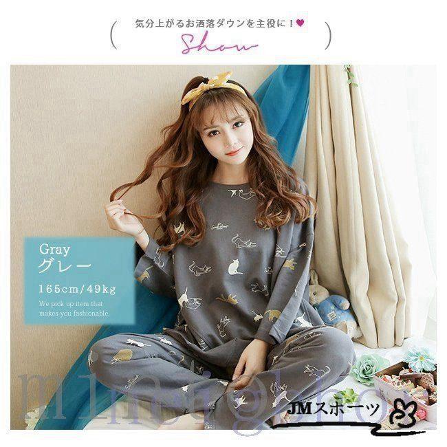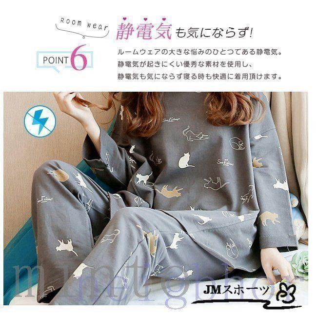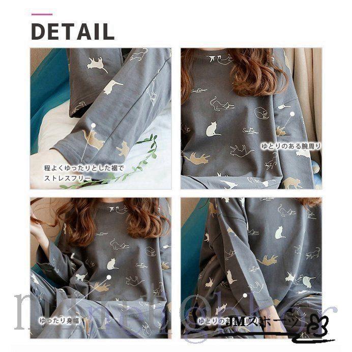 ルームウェア 上下セット レディース 長袖 後ろ長め スリット 切りっぱなし ネコ柄 かわいい ゆったり 春 秋 パジャマ 長ズボン プルオーバー 部屋着 寝巻き ナイトウェア トップス パンツ セットアップ おしゃれ 大きいサイズ 薄手 やわらか 新作 新品 40代 30代 20代 女性用 ホームウェア 室内着 長袖パジャマ レディースパジャマ