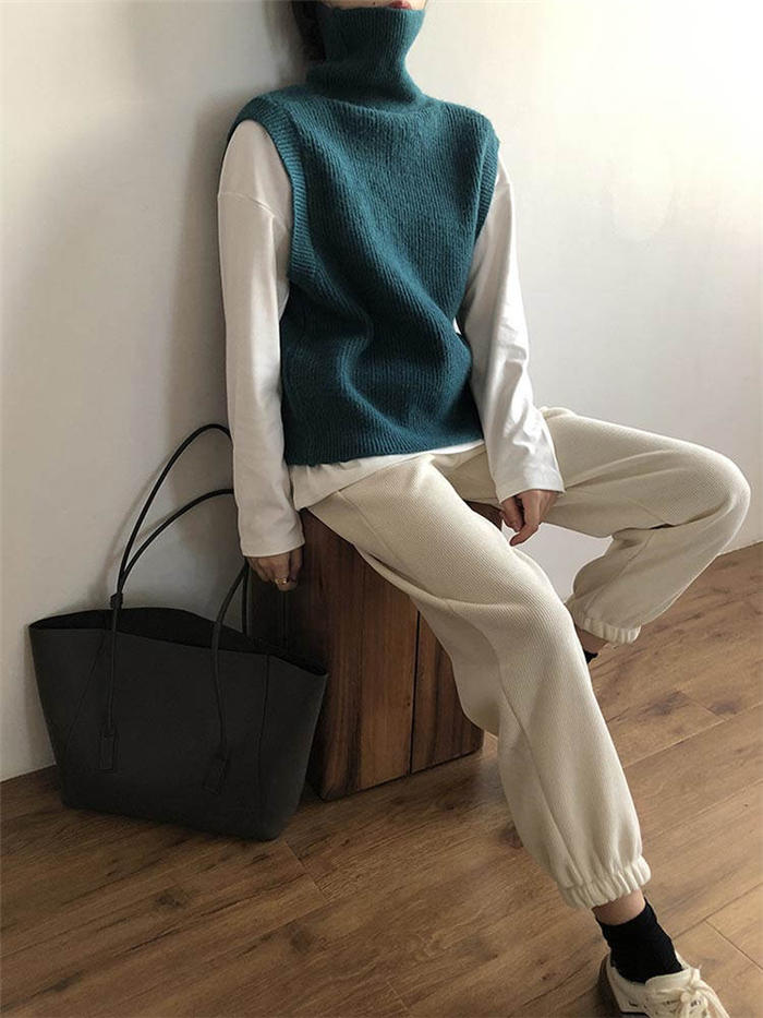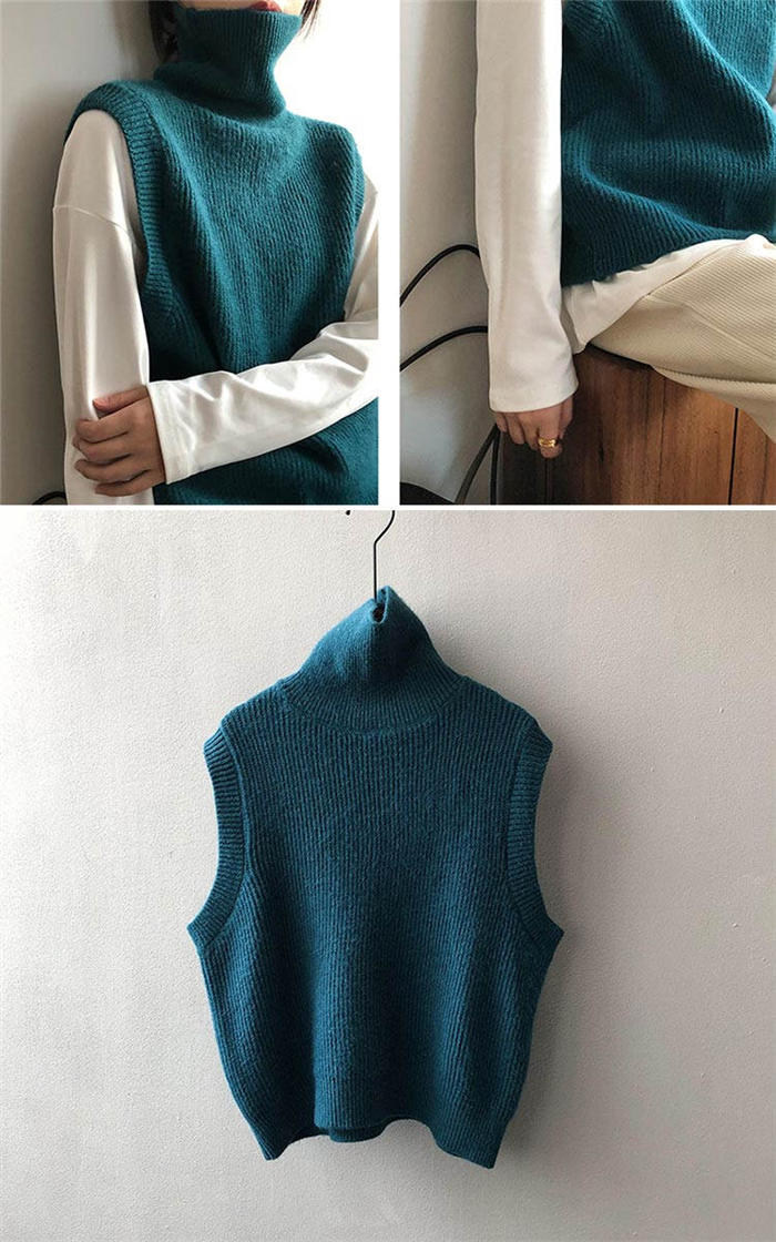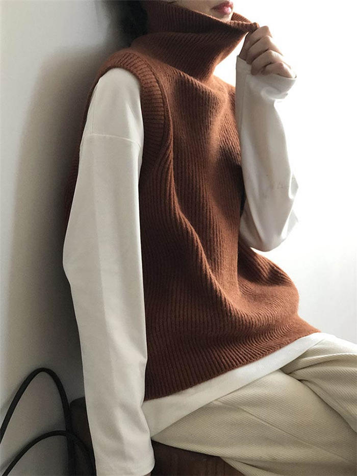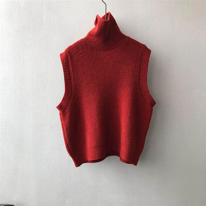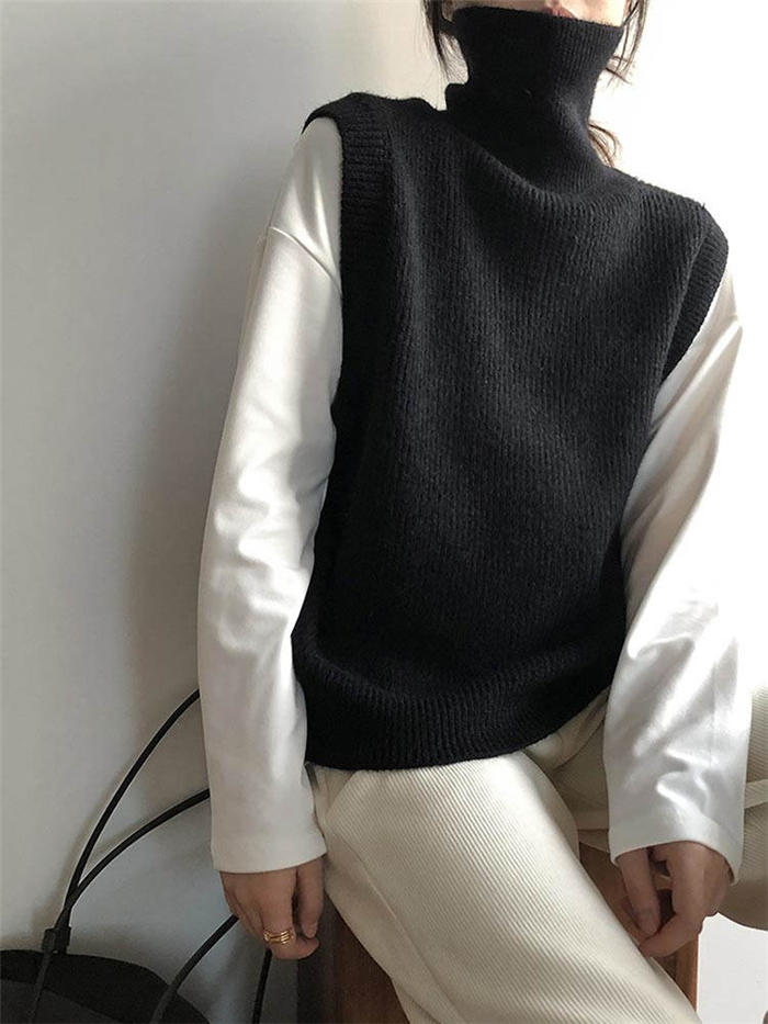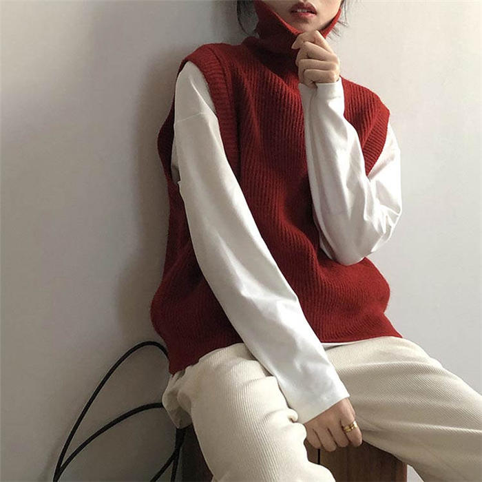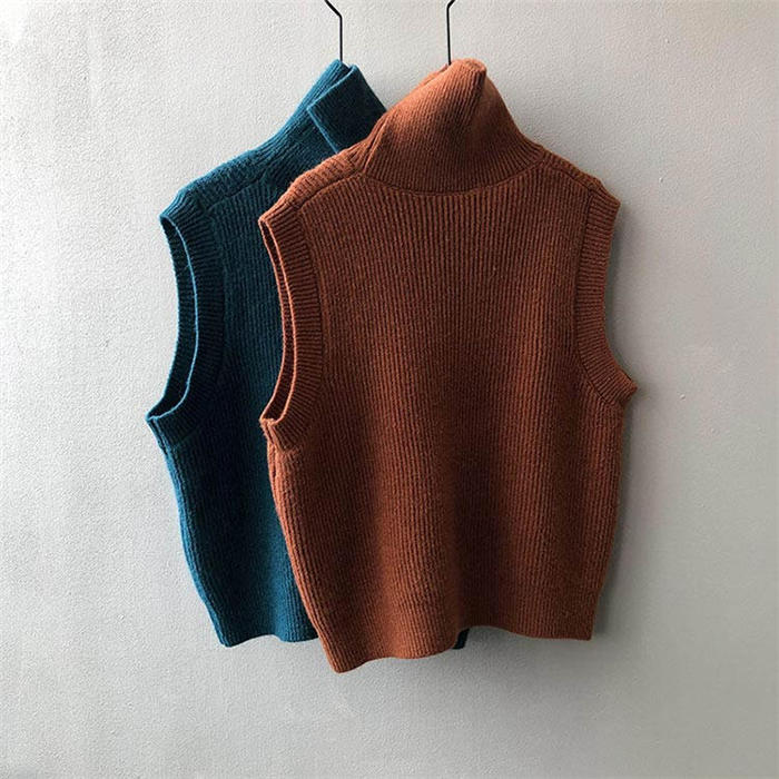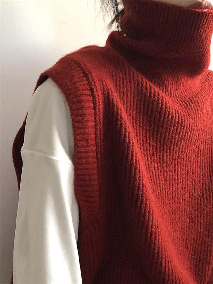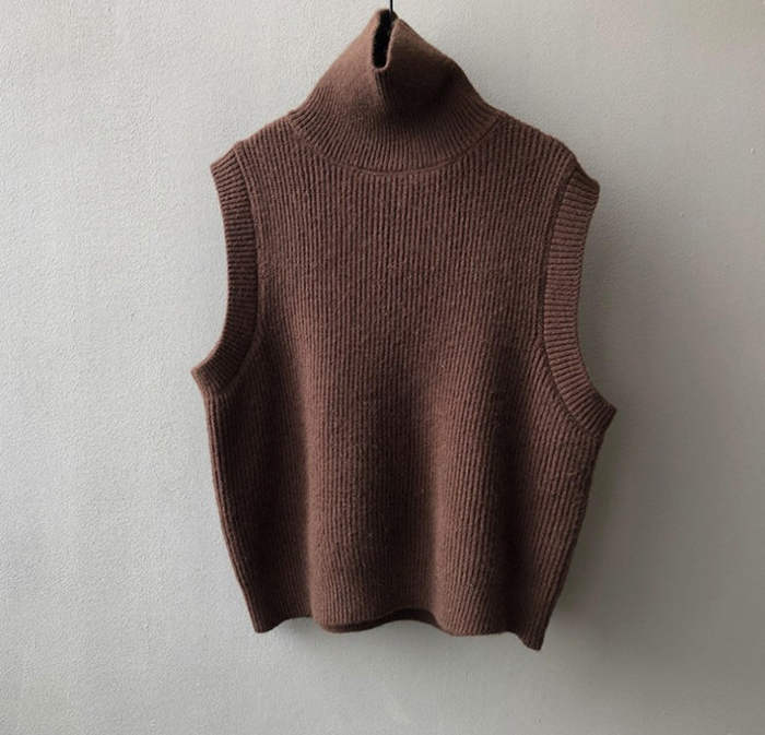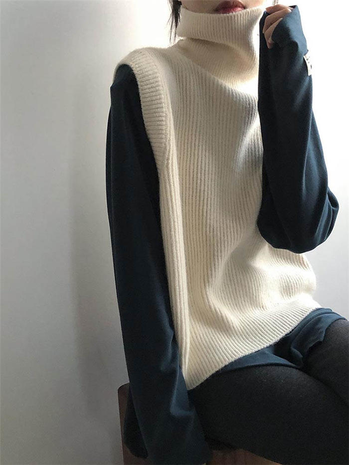 ニット ベスト ハイネック ニット ベスト レディース 大きいサイズ ノースリーブ トップス セーター ニットトップス リブ 秋冬 ニットベスト タートルネック