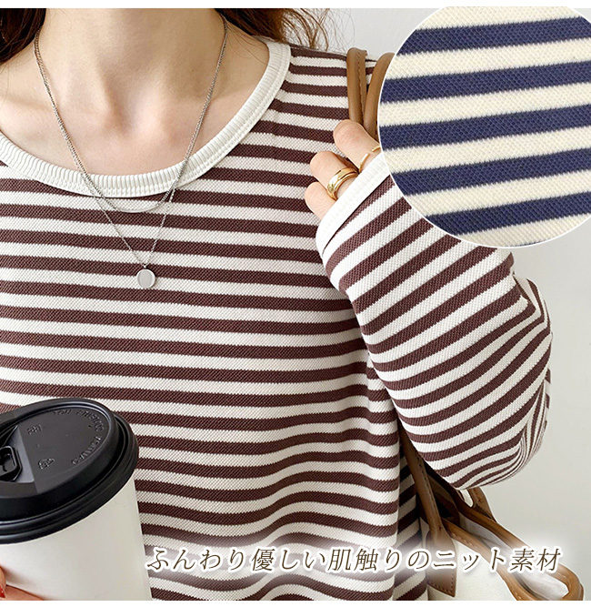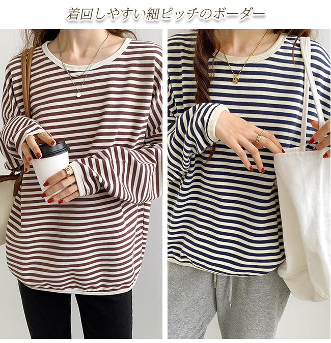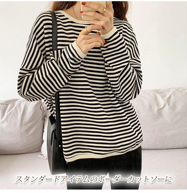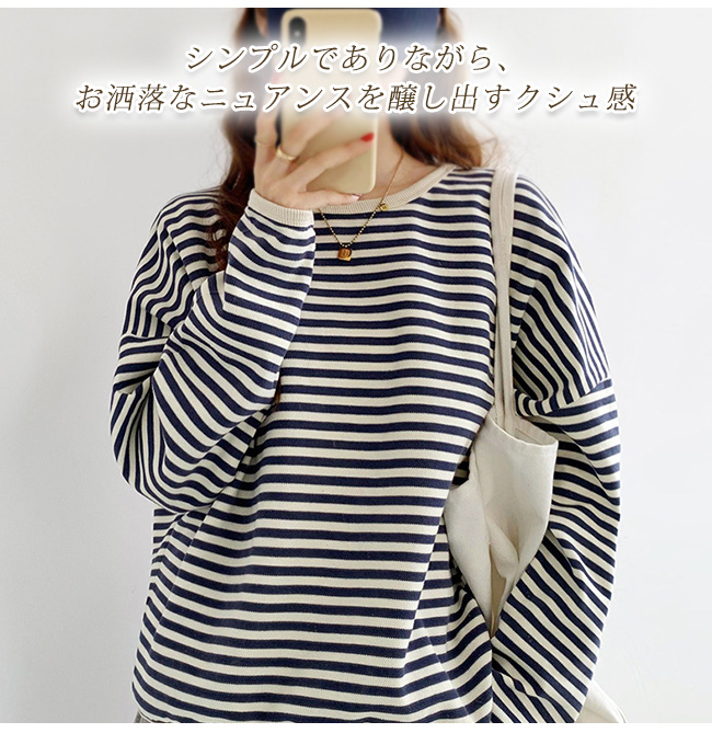 ボーダー カットソー レディース オーバーサイズ 大きいサイズ ゆったり トレンド Uネック