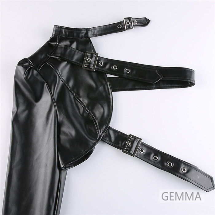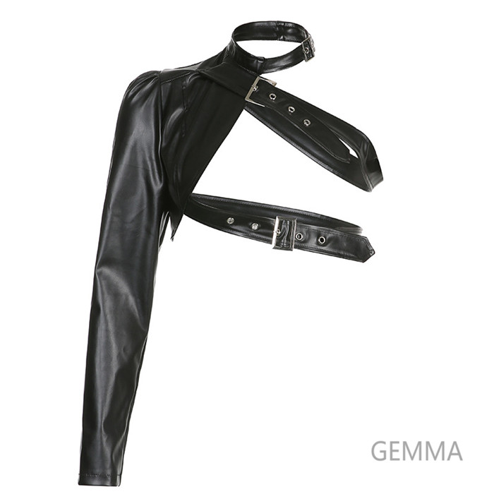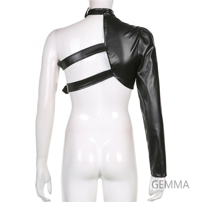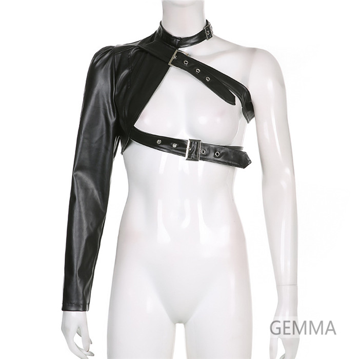 ダンストップス 片袖 ワンショルダー レディース ステージ衣装 PU革 ブラウン ヒップホップ トップス ブラック 黒 ダンス衣装 レザー 舞台衣装 イベント
