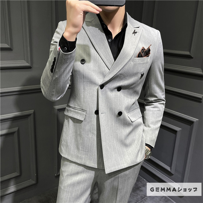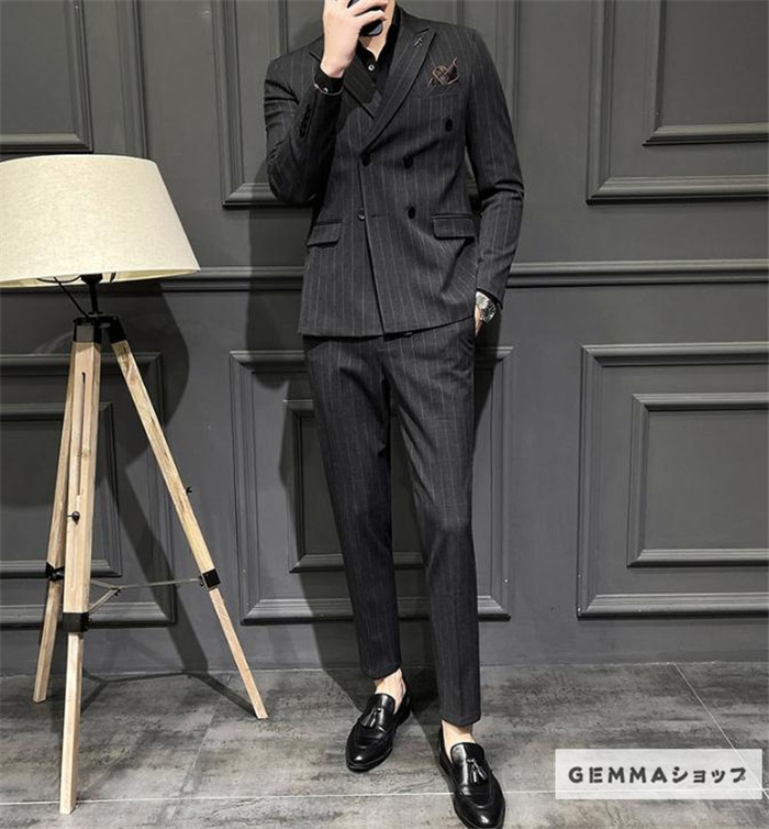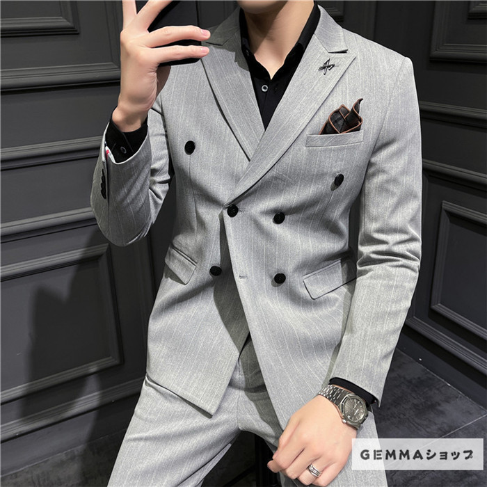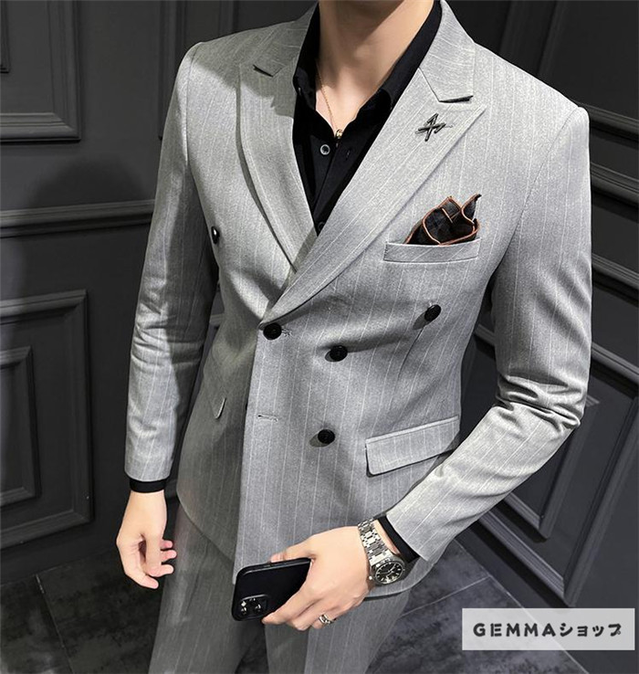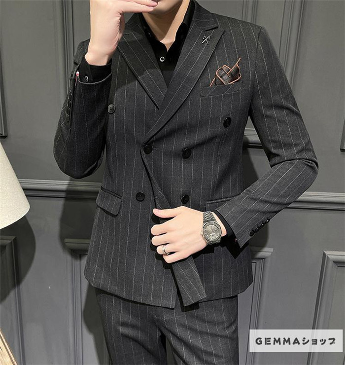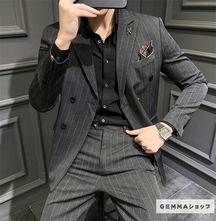 フォーマルスーツ メンズ ビジネス 通勤 オフィス 2点セット 結婚式 ストライプスーツ パンツスーツ パンツ ジャケット 上下セット