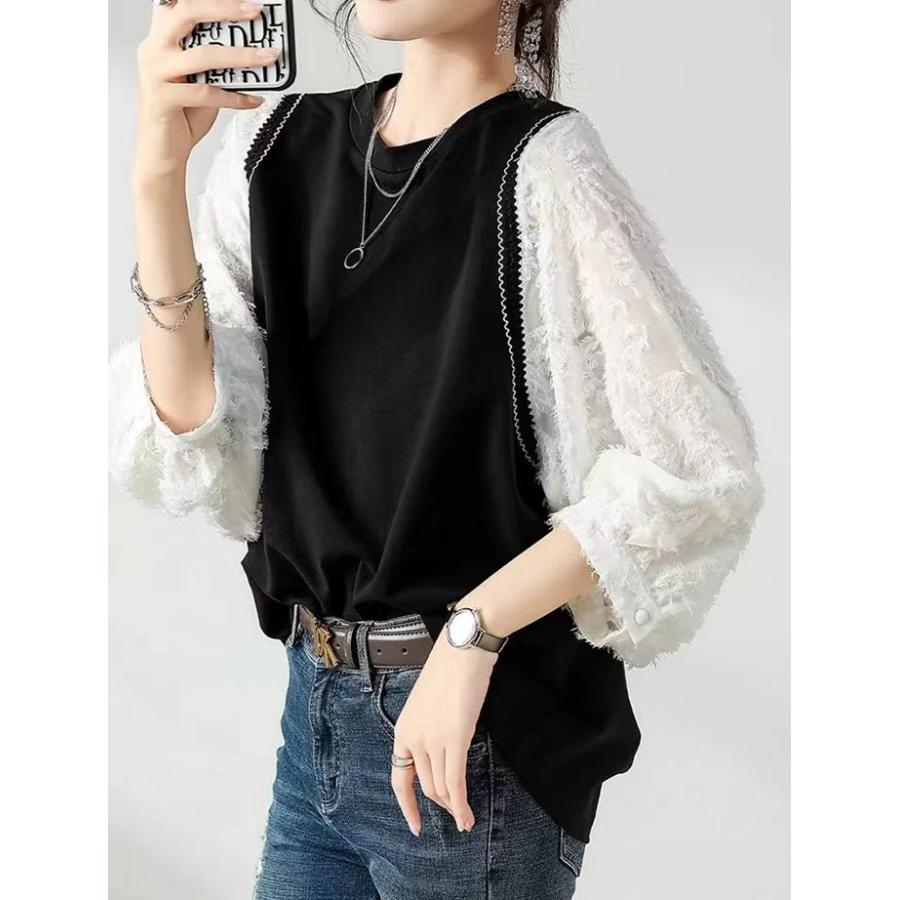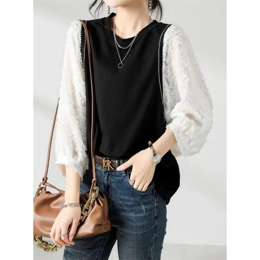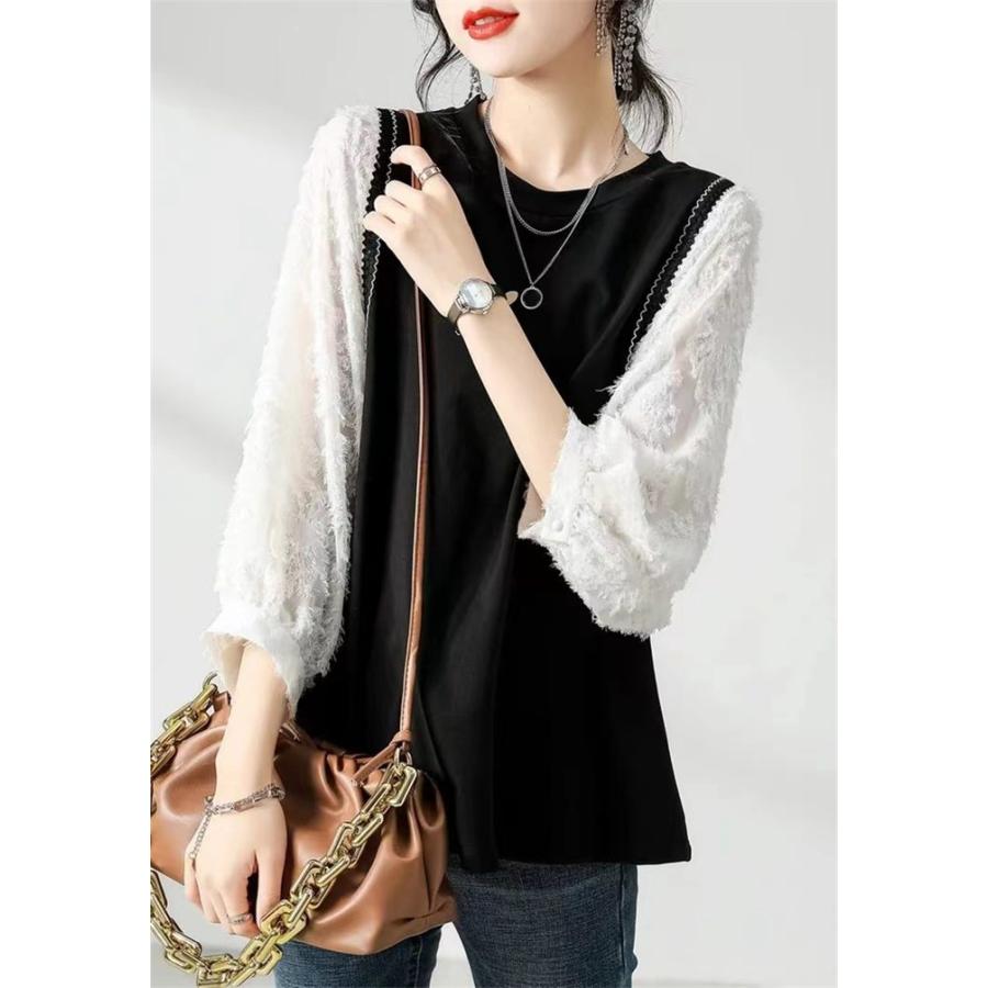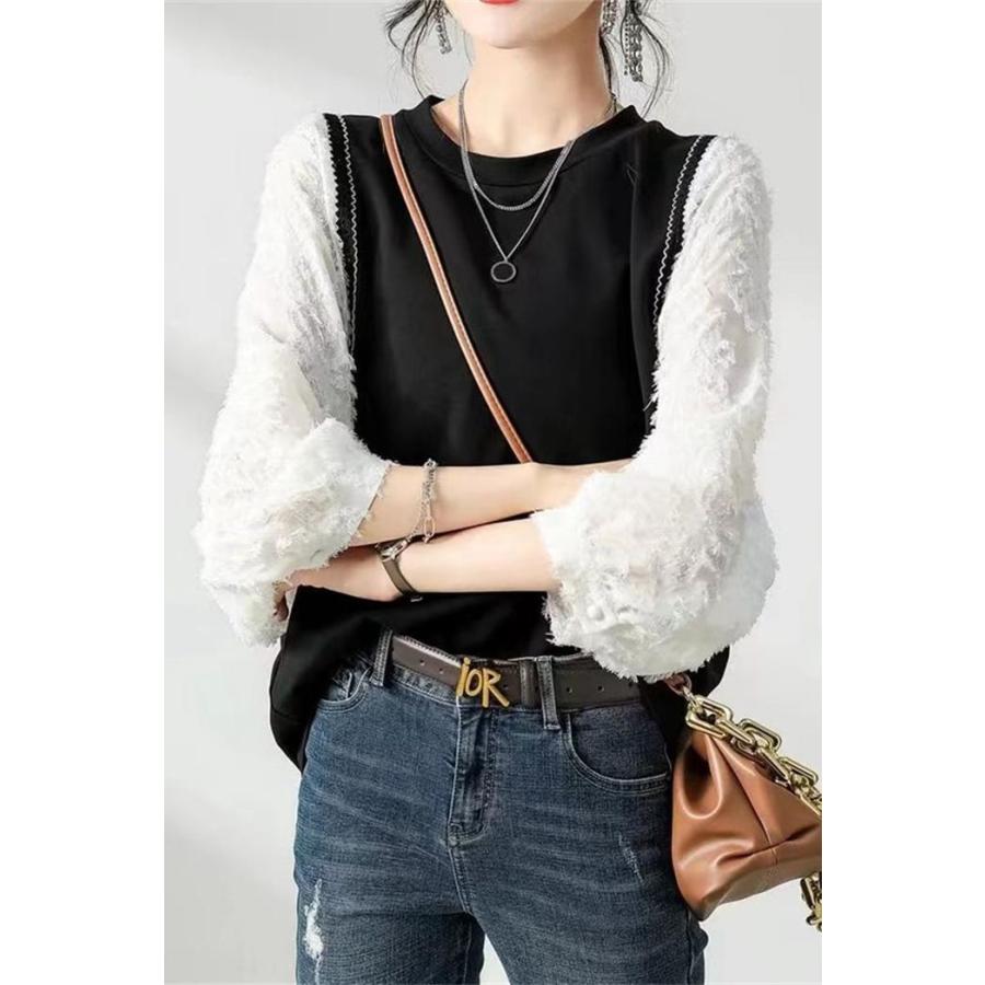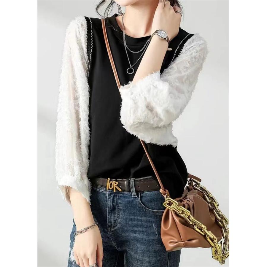 長袖Tシャツ カットソー レディース 重ね着風 トップス チュニック Tシャツ シンプル 長袖 カジュアル カットソー インナー