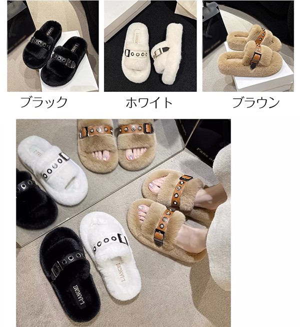 ファーサンダル 厚底 スリッパ サンダル かかとなし もこもこ 室内室外兼用 レディース ふわふわ サンダル おしゃれ コンフォートサンダル クファー 厚底 サマー 春 夏 秋 冬 ホワイト ブラックS1ZB