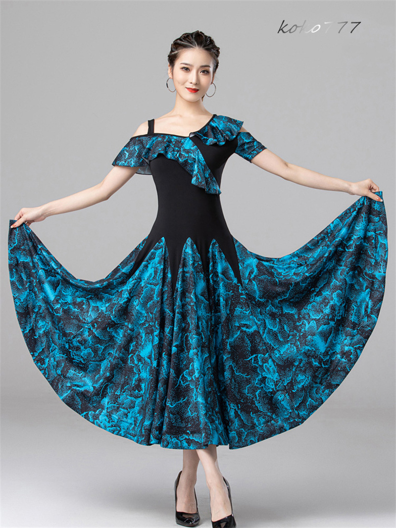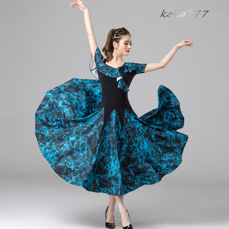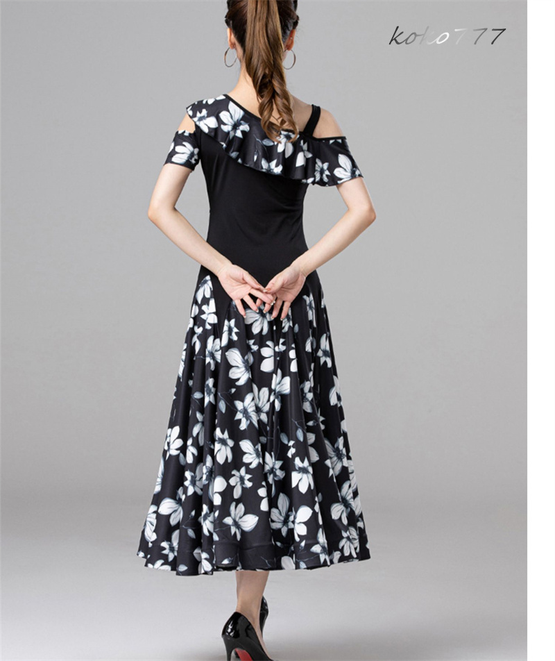 ロングドレス レディース ワンピース ラテンダンス 花柄 パーティー 公演 舞台衣装 コスチューム 発表会 洋服 モダンダンス ナショナルダンス ワルツ