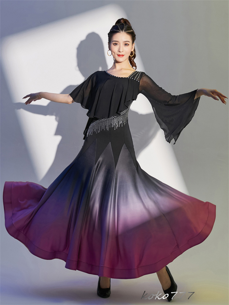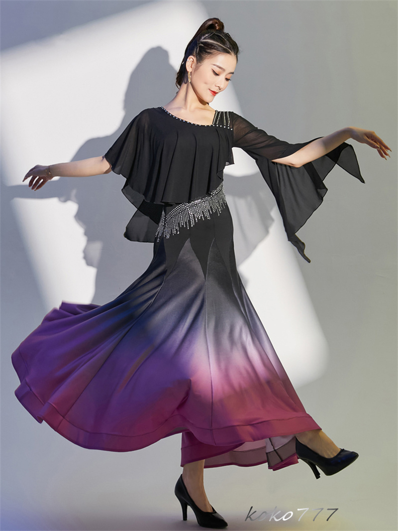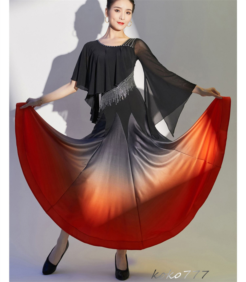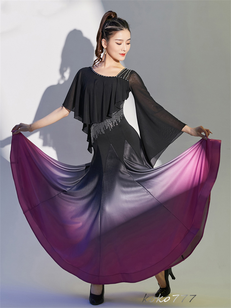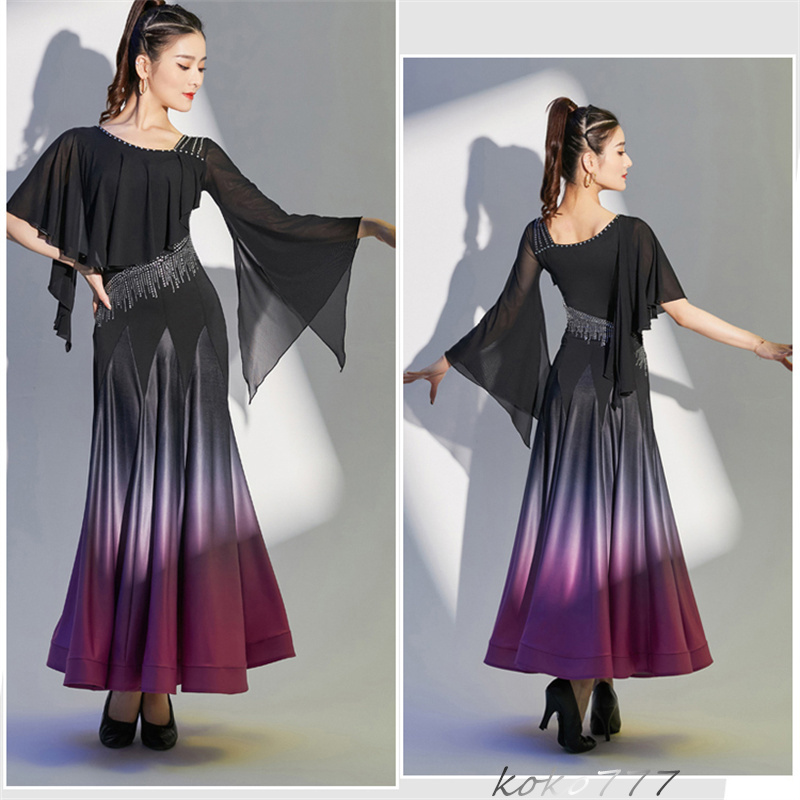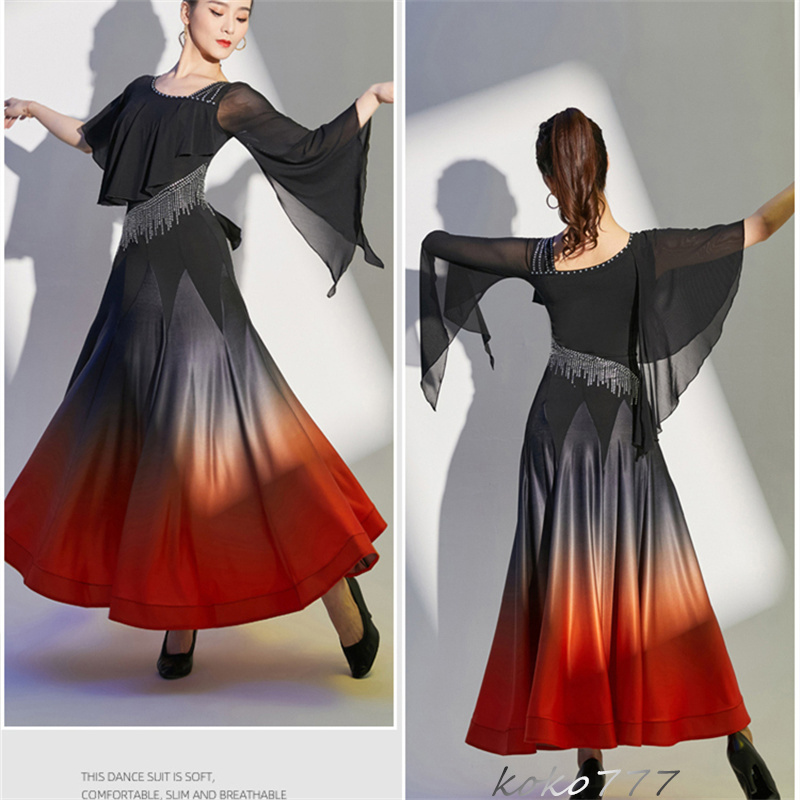 ロングドレス レディース ワンピース ラテンダンス カラードレス パーティー 舞台衣装 モダンダンス 洋服 ワルツ 発表会 公演 ナショナルダンス コスチューム