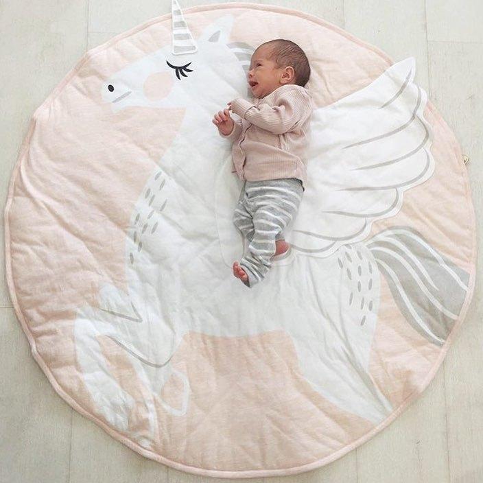 ベビープレイマット 洗える 動物柄 可愛いベビーマット 円形 遊びマット ラグマット 出産祝い 直径90CM 出産記念品 綿素材 かわいい 赤ちゃん ギフト
