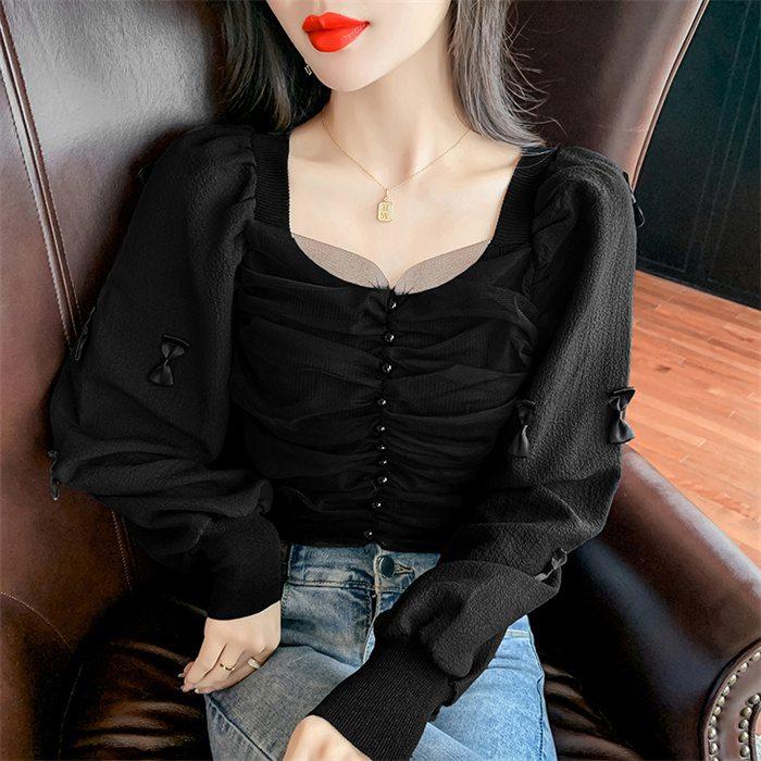 シアーブラウス 長袖 シフォンシャツ トップス インナー シャツブラウス レディース 秋新作