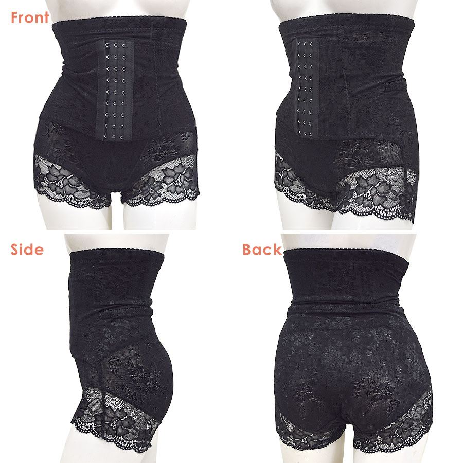 お腹引き締め タイト ボディシェイパー ヒップアップ 産後 加圧 美尻 メッシュ 通気性 フラワー 総レース 多段ホック 後ろ開き