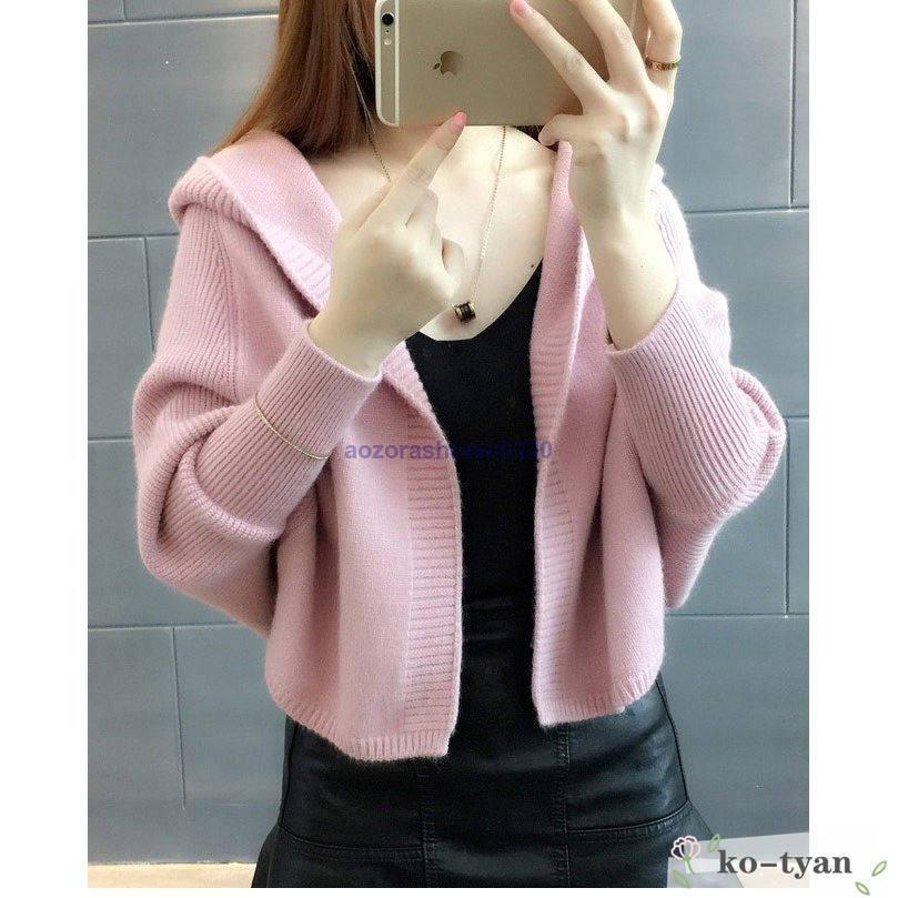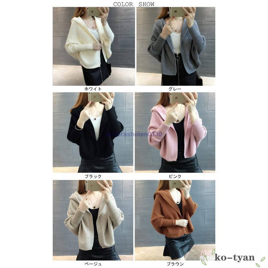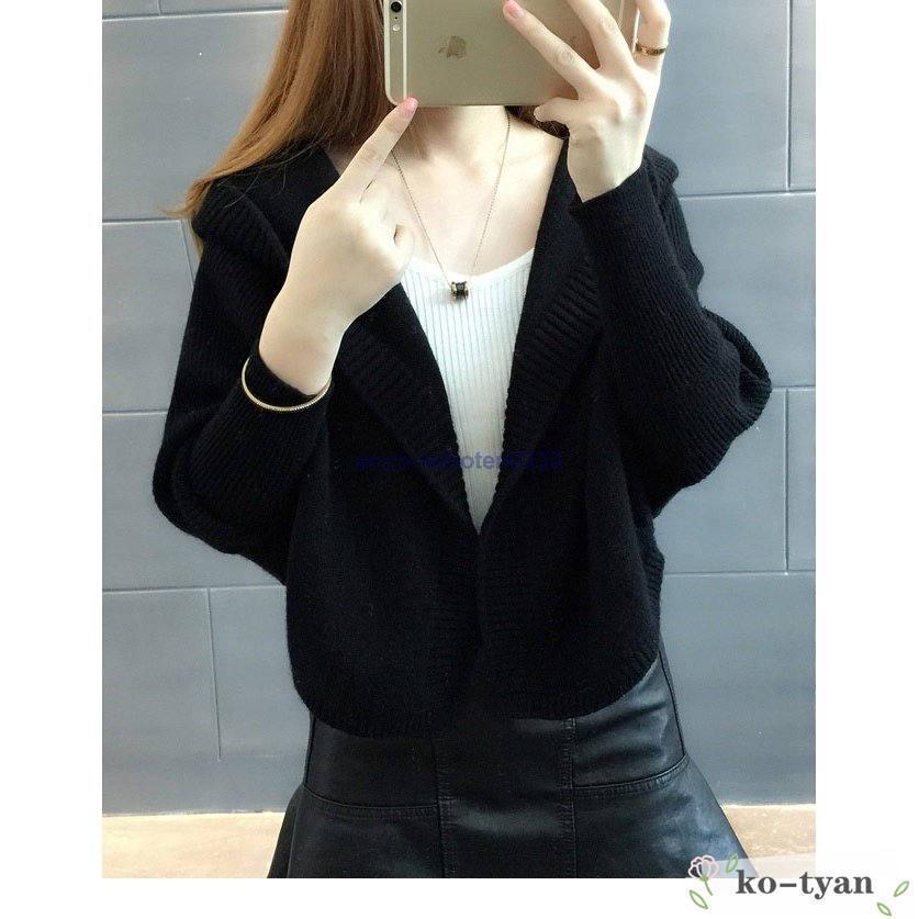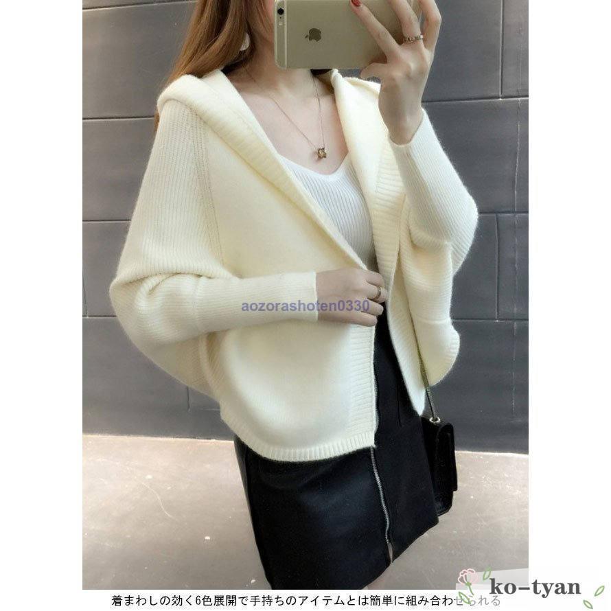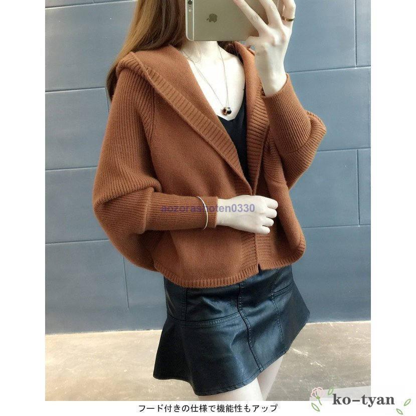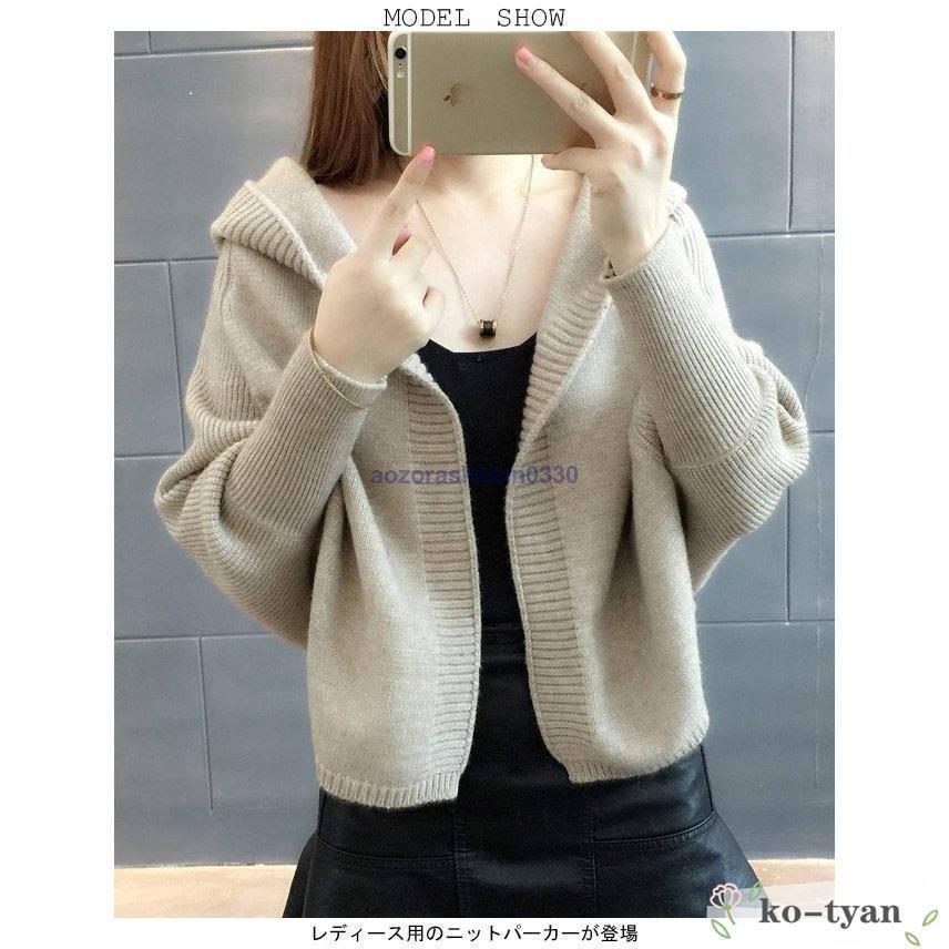 ニットカーディガン レディース ニット パーカー ドルマンスリーブ ノーボタン フード付き 女性用 アウター 春秋物 ライトアウター