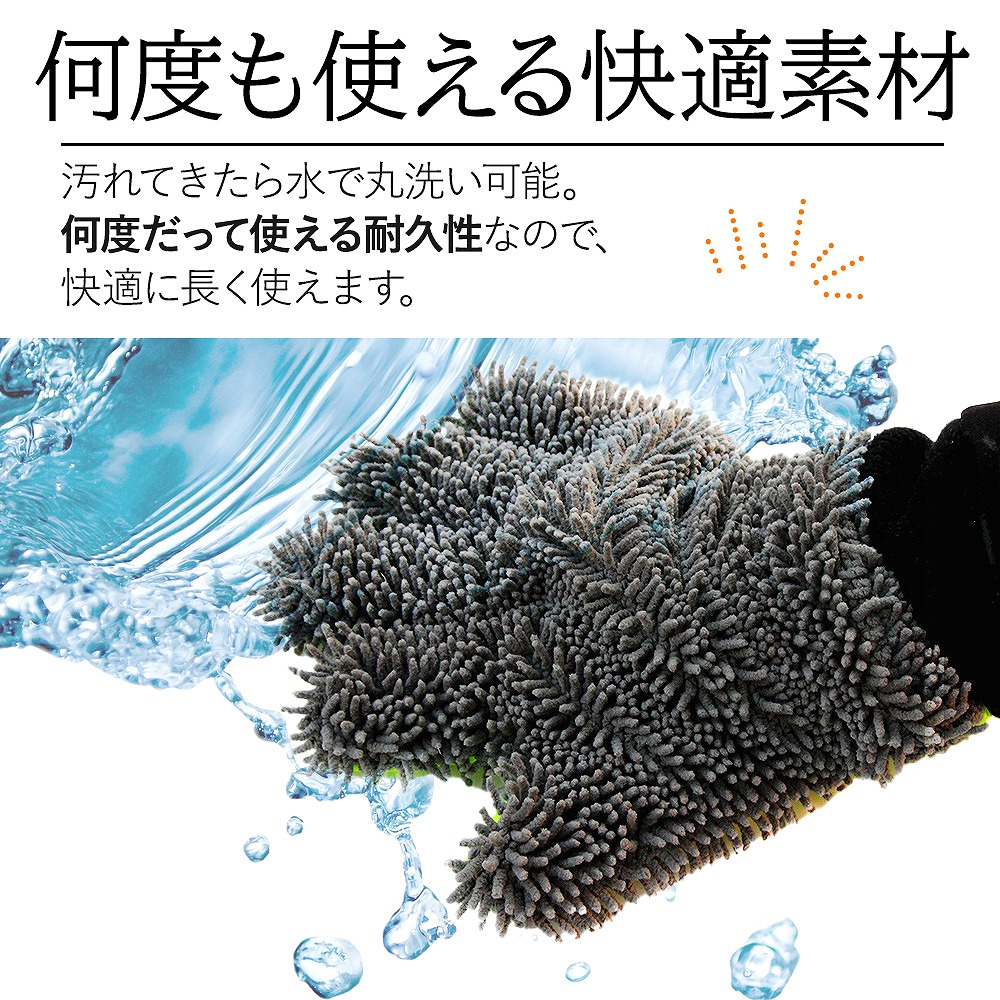 シャンプーや汚れ取りだけでなく水滴拭き取り&ホコリ取りも快適にできる両面仕様!