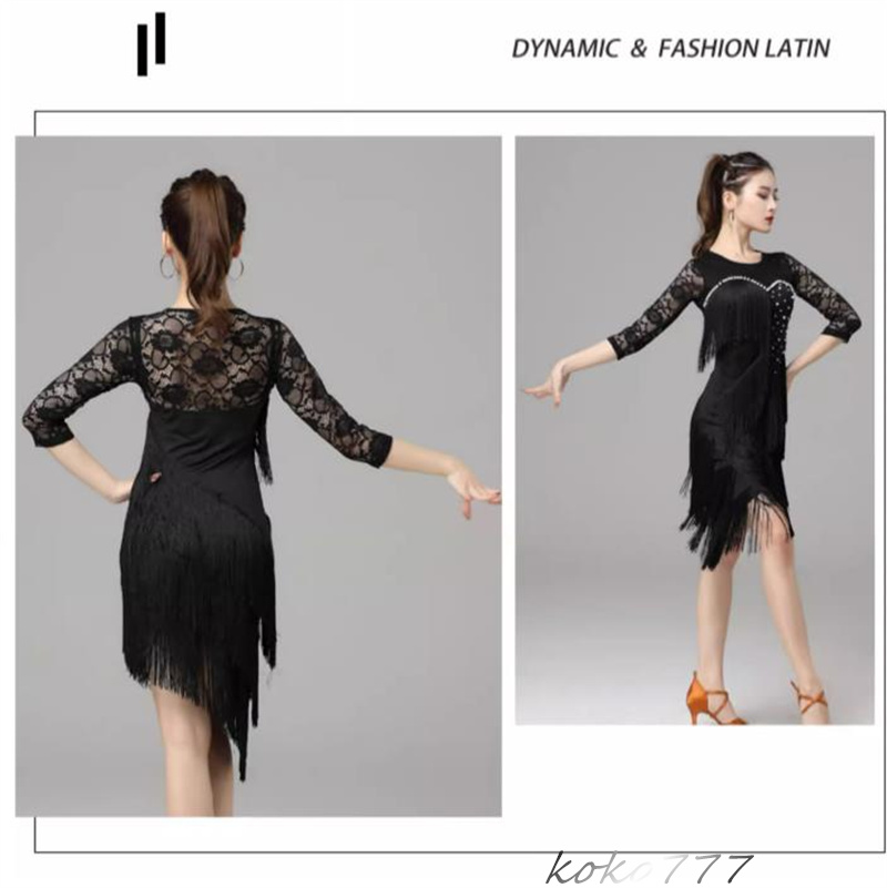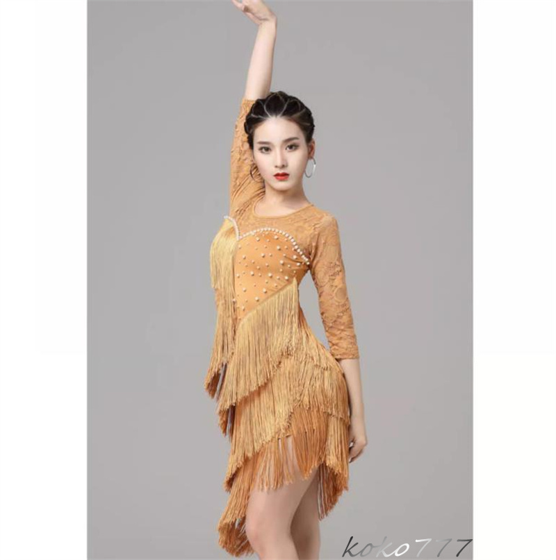 ドレス レディース ワンピース ラテンダンス フリンジ パーティー 公演 ナショナルダンス レース 発表会 モダンダンス 洋服 コスチューム 舞台衣装 パール