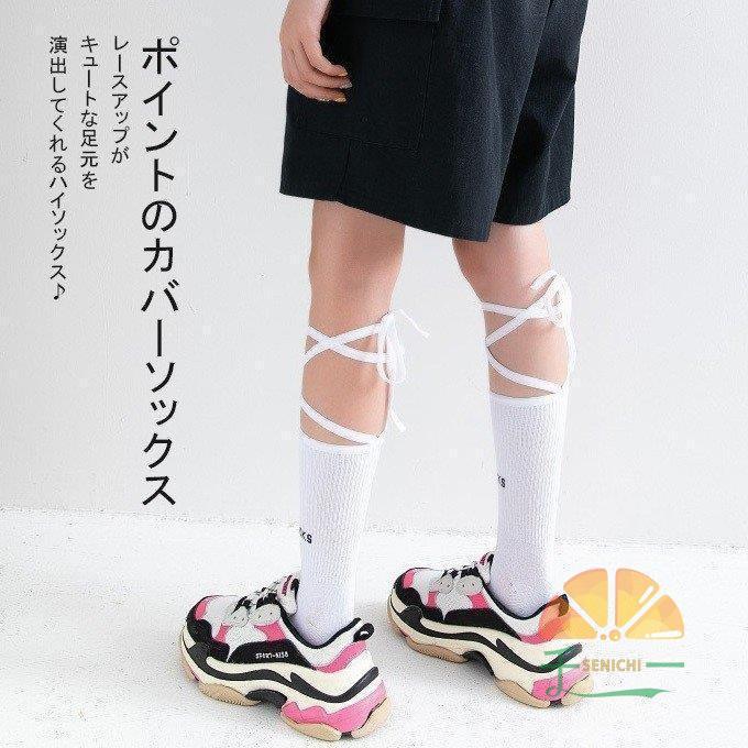 2枚セット 夜光 ソックス レディース リボン紐付 ハイソックス 靴下 ソックス