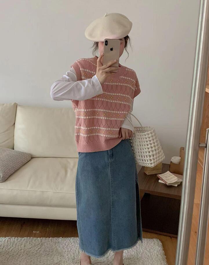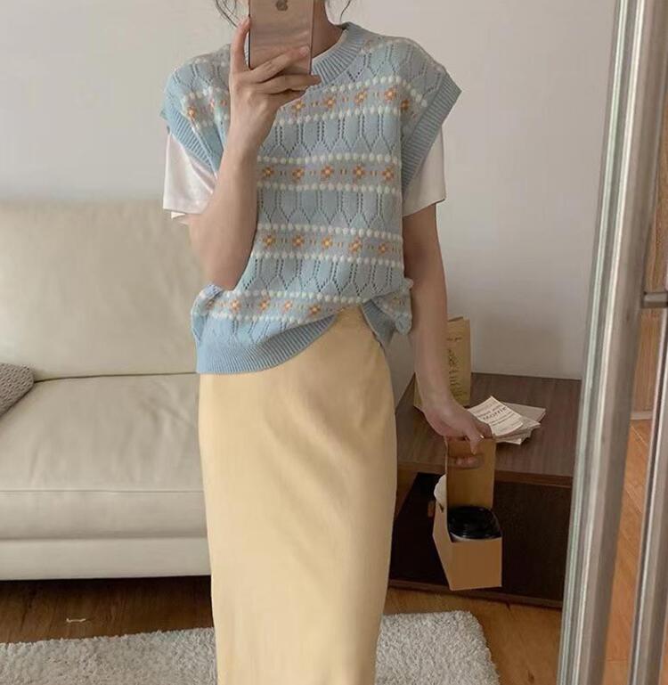 ベスト レディース 春 秋冬 アウター Uネック オーバーサイズ ゆったり プルオーバー かわいい ノースリーブ 肩落ち レイヤード カジュアル おしゃれ