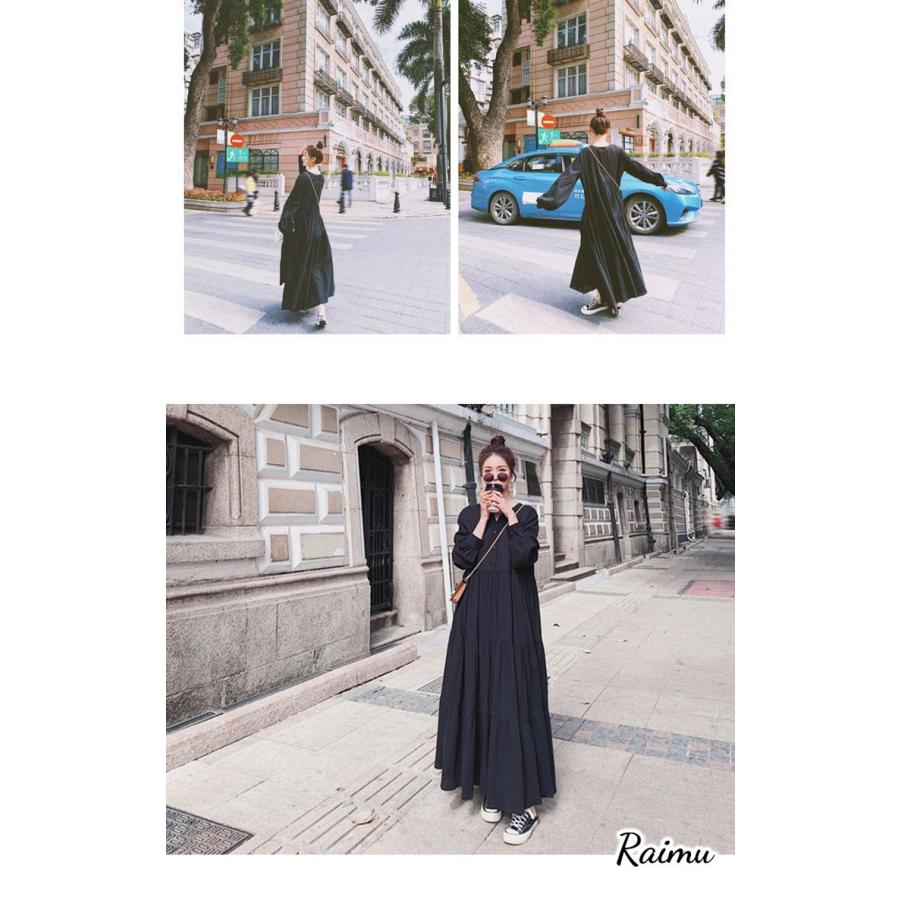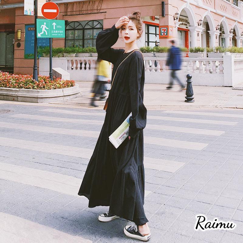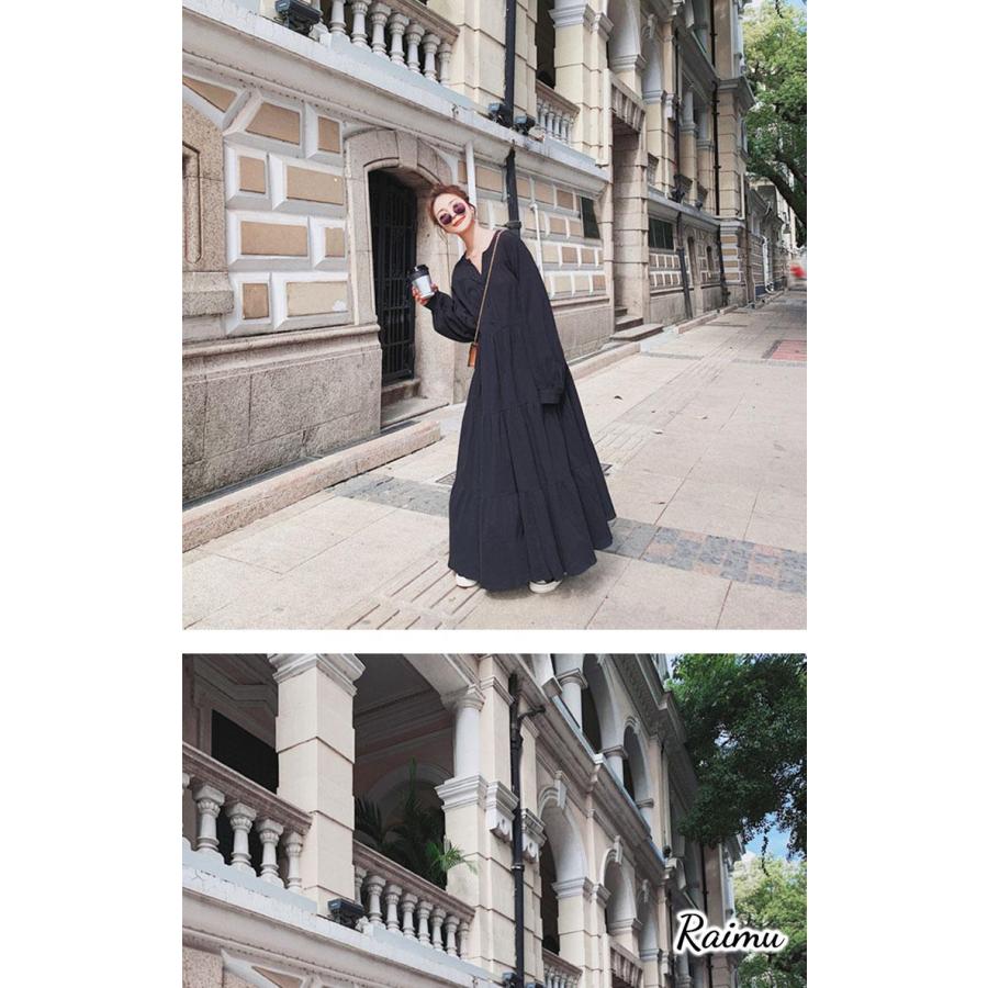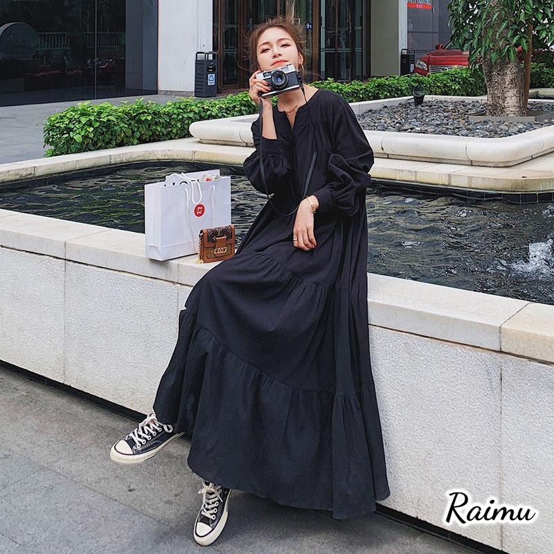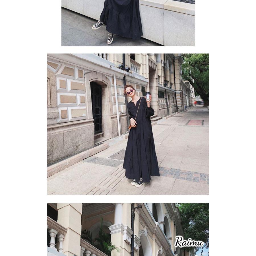 ワンピース レディース マキシ丈ワンピース 長袖 おしゃれ きれいめ 黒ワンピ Vネック 揺れる 可愛い 上品 きれいめ ゆったり 着痩せ 春夏秋冬 ティアード