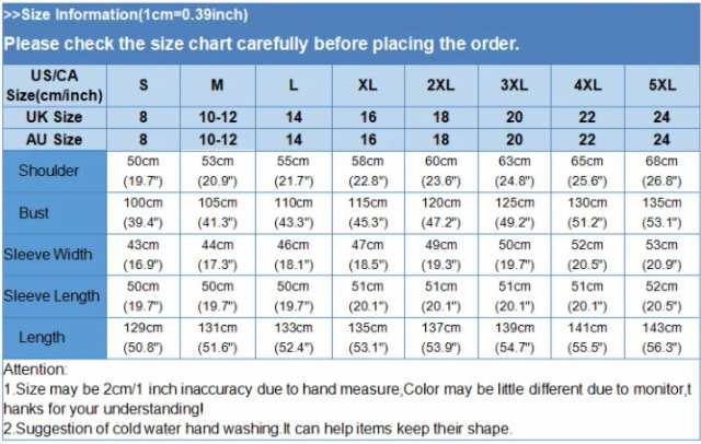 SIZE S M L XL 2XL 3XL 4XL 5XL
