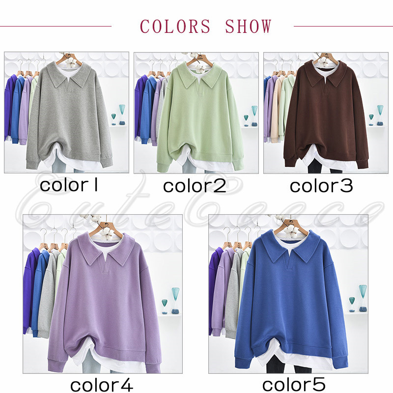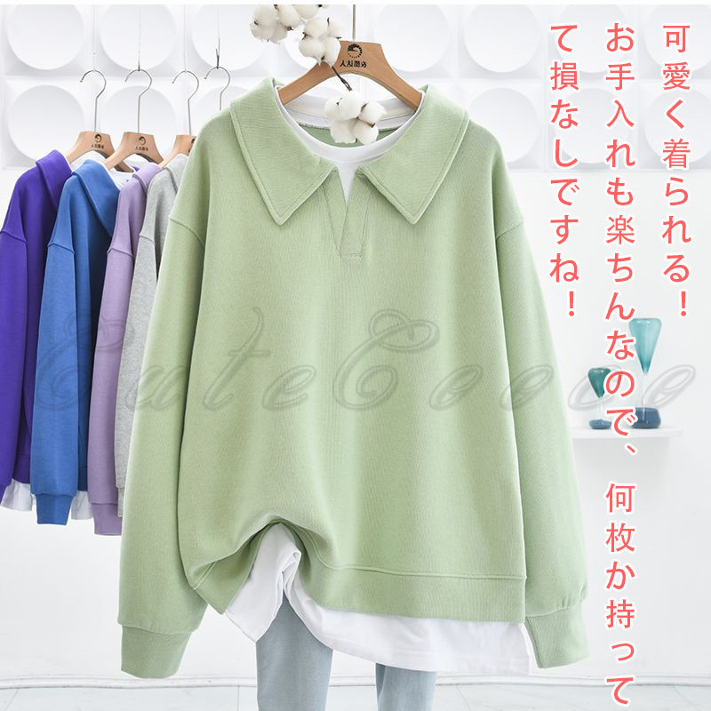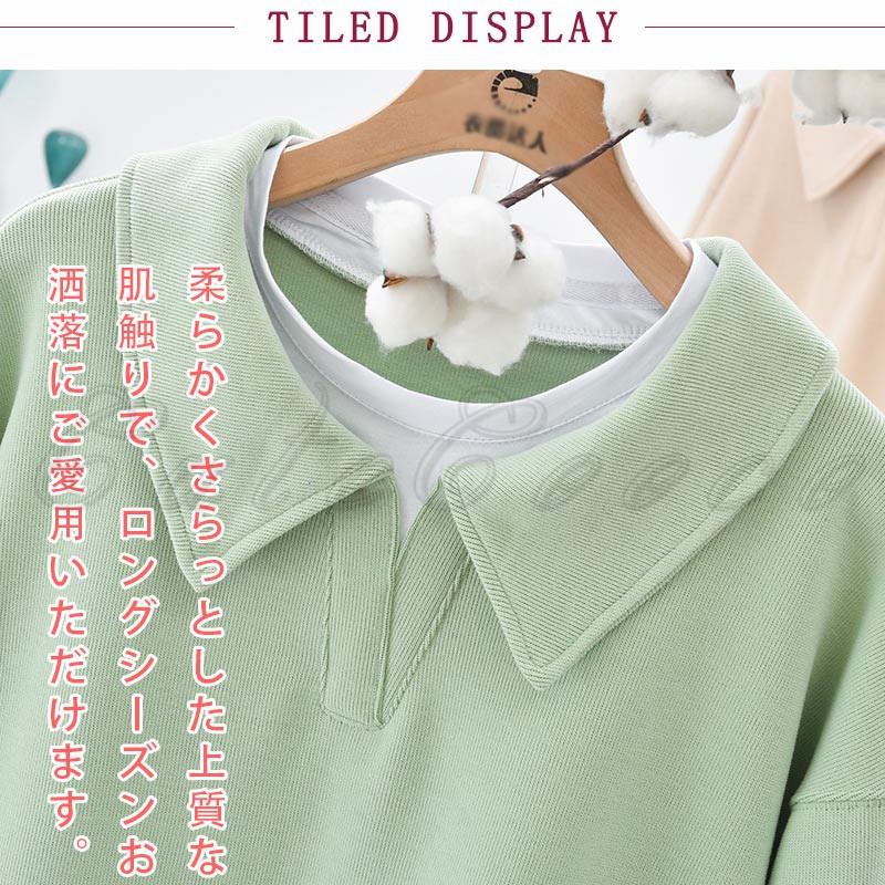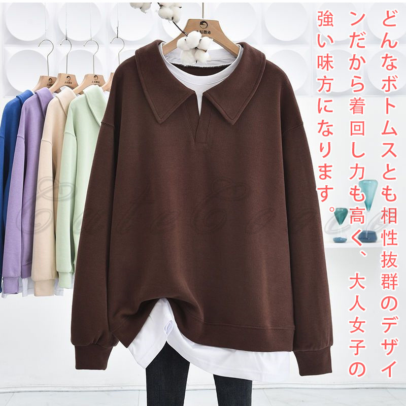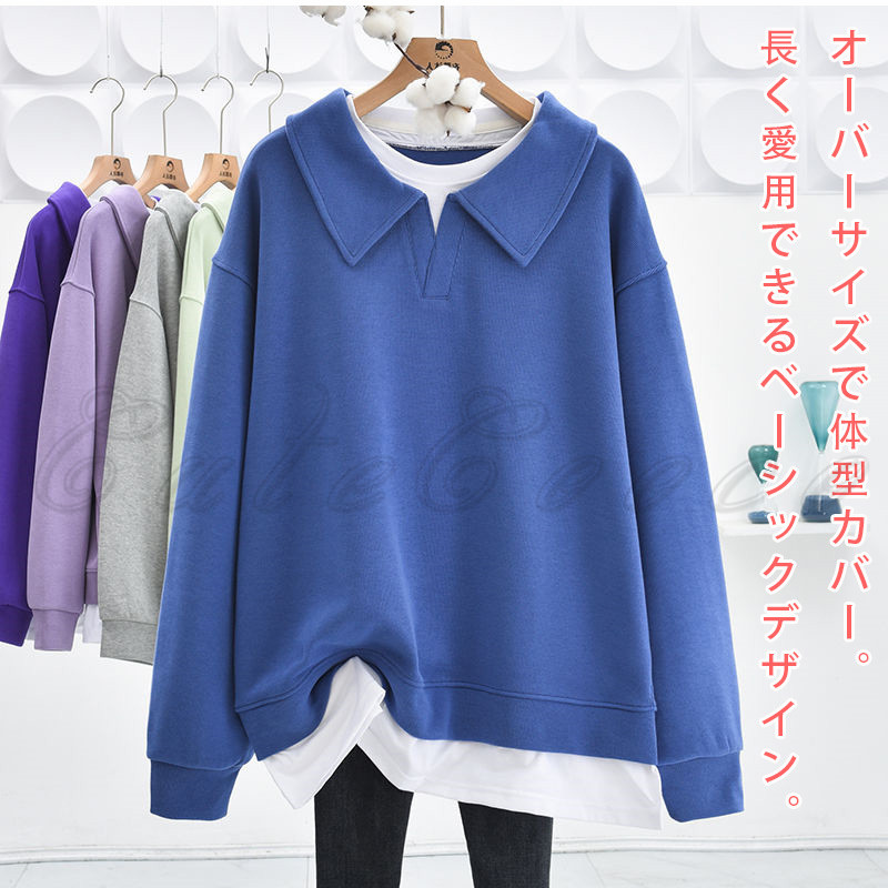 重ね着風トレーナー 重ね レディース ポロ襟 スウェット トップス 秋 冬 プルオーバー 体型カバー ゆったり 送料無料 大きいサイズ 春 無地