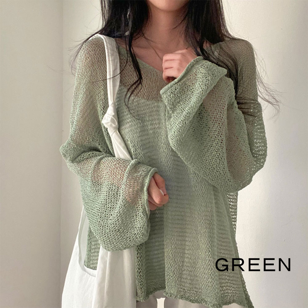 メッシュ編み シアー 透け感 プルオーバー ドロップショルダー ルーズ ゆったり オーバーサイズ カジュアル フェミニ 透けニット 韓国っぽ トップス