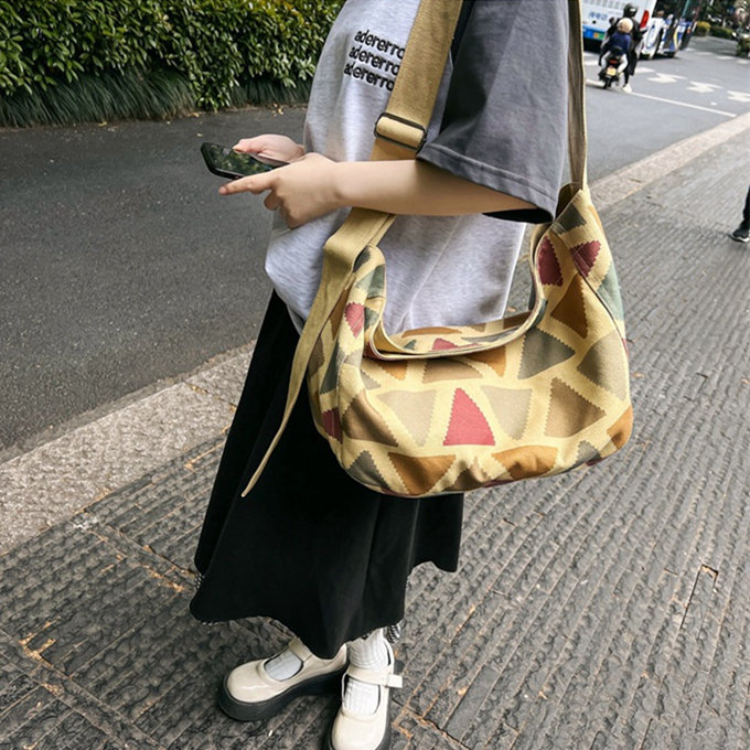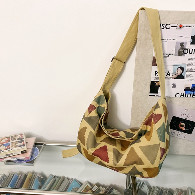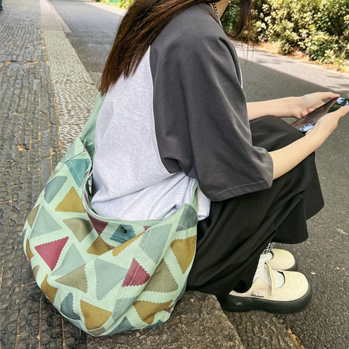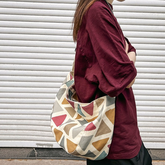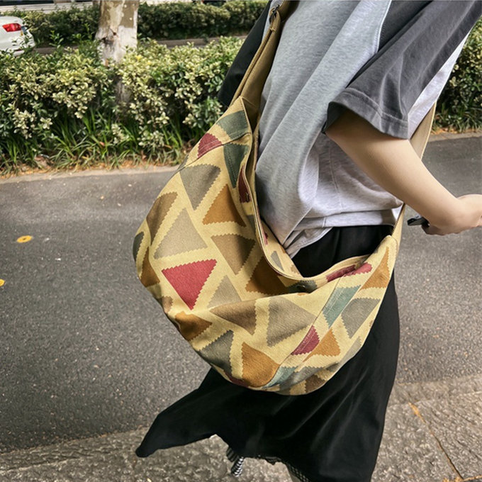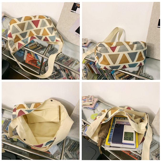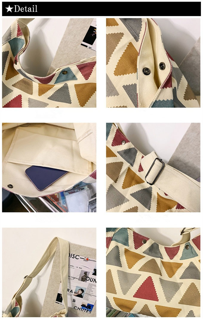 2023 新作 レトロ 三角 幾何学 グラフィック メンズ キャン帆布 レディース トートバッグ 大容量 男女兼用 ショルダーバッグ コットン 大きめ イラスト 綿
