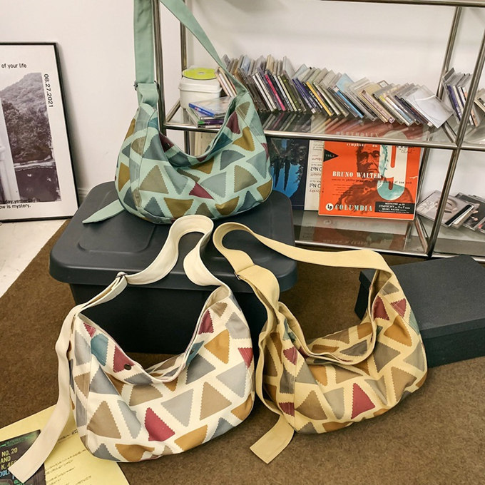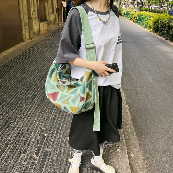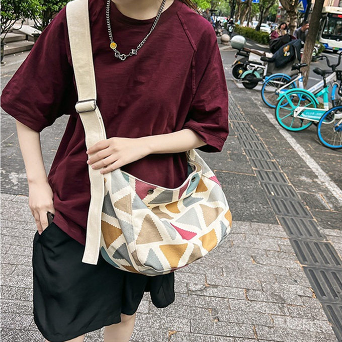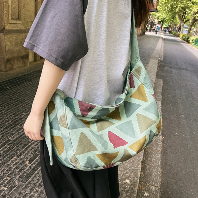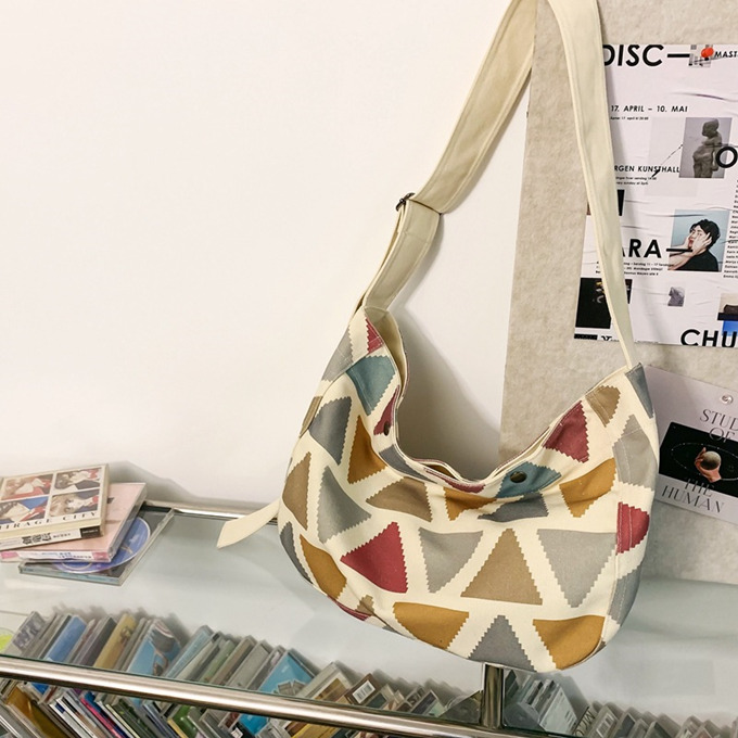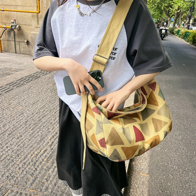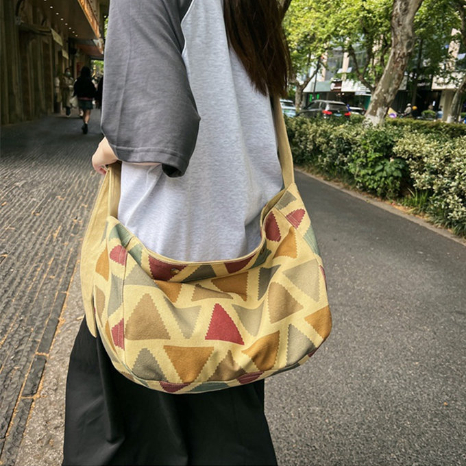 2023 新作 レトロ 三角 幾何学 グラフィック メンズ キャン帆布 レディース トートバッグ 大容量 男女兼用 ショルダーバッグ コットン 大きめ イラスト 綿